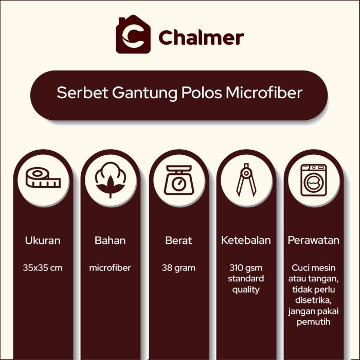 Lap Tangan Microfiber Chalmer 35 x 35 cm Serbet Handuk Lap Gantung