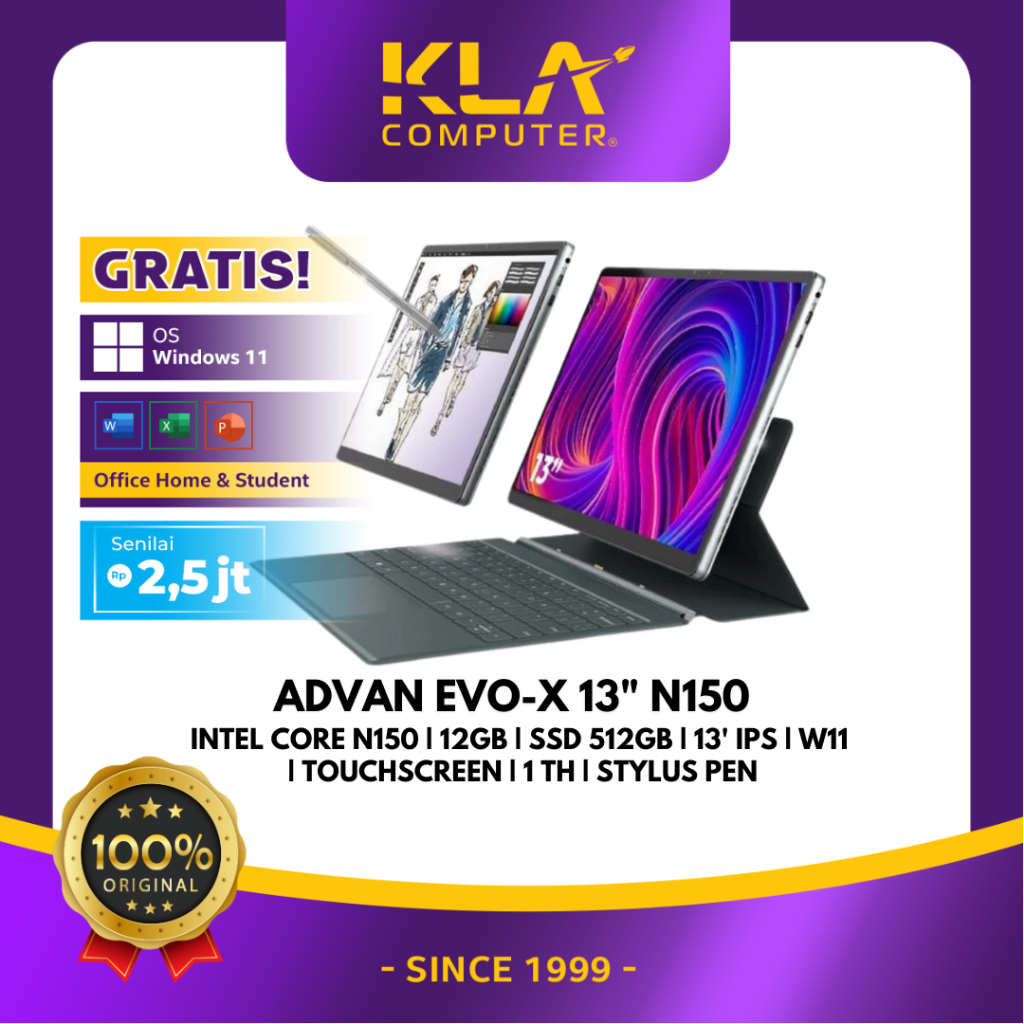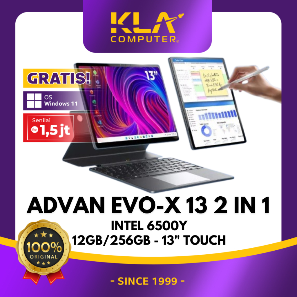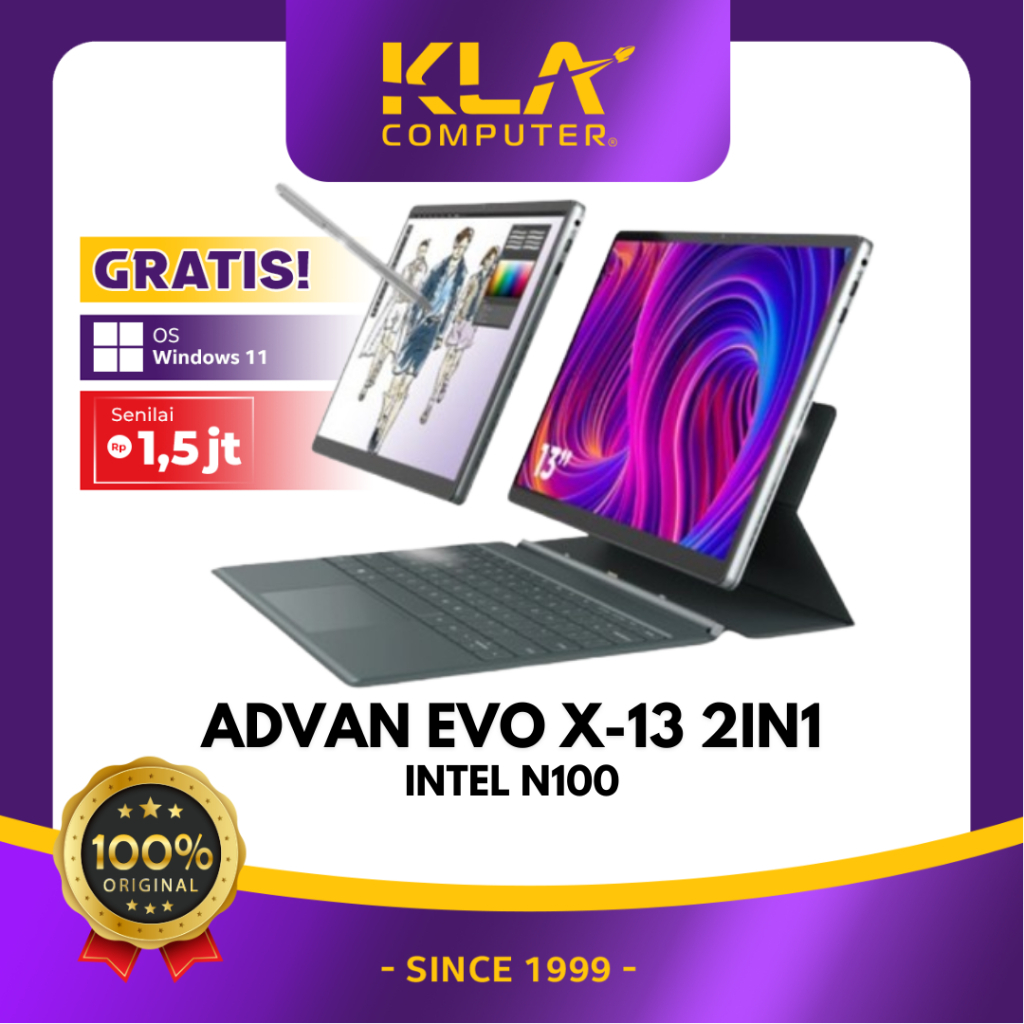 Laptop ADVAN Evo-X 2 in 1 13" Touch Screen Detachable 2.5K Display Intel N100 12GB/512GB Windows 11 Free Stylus Pen