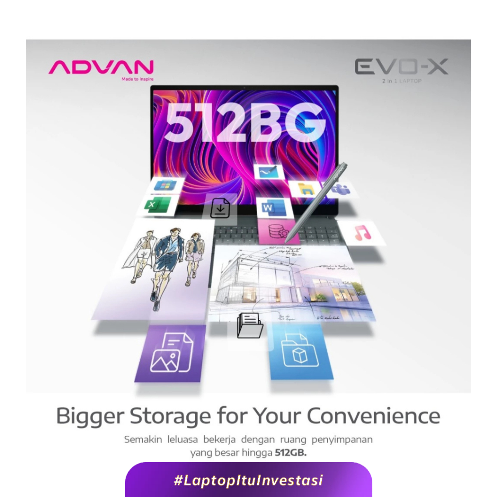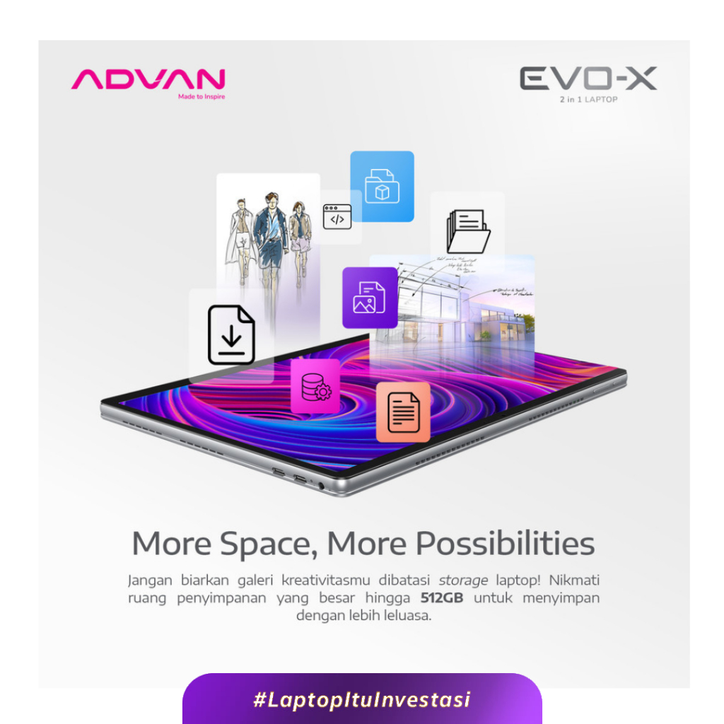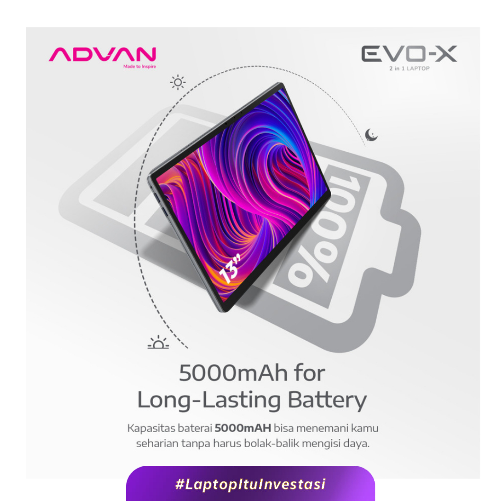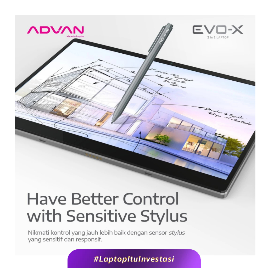 Laptop ADVAN Evo-X 2 in 1 13" Touch Screen Detachable 2.5K Display Intel N100 12GB/512GB Windows 11 Free Stylus Pen