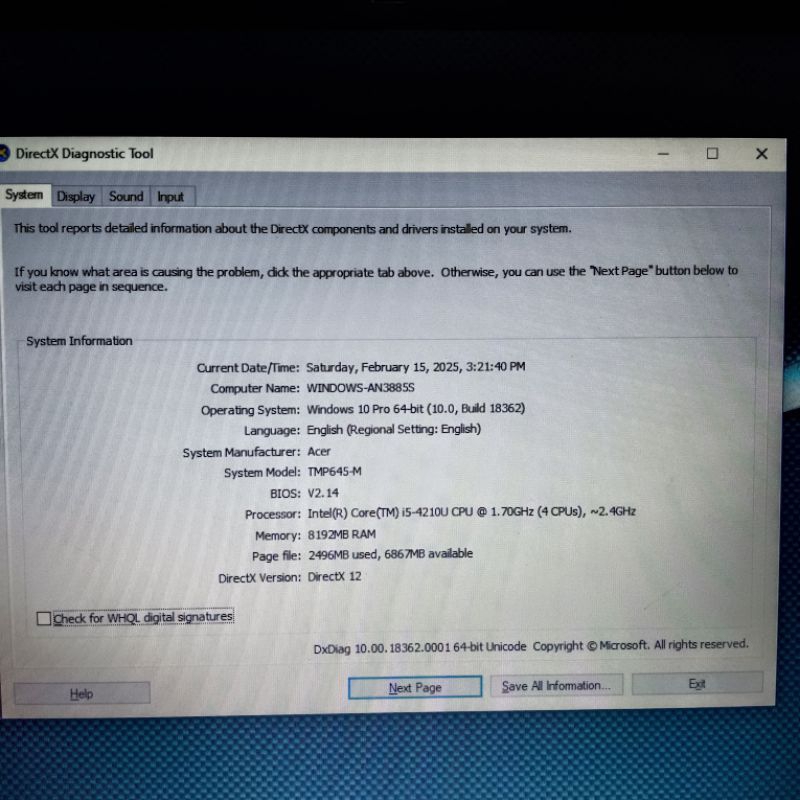 Laptop Acer Travelmate P645 intel Cor i5-4210U Ram 8GB SSD 256Gb Keyboard backlight vga intel HD Graphic family Windows 10 slim