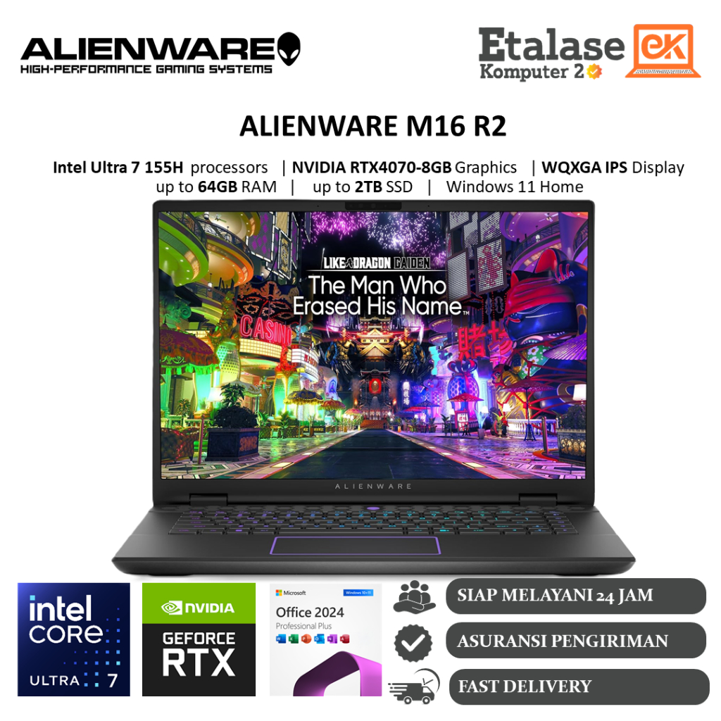 Laptop Alienware M16 R2 Nvidia RTX4070-8GB Intel Ultra 7 155H 64GB DDR5 2TB Ssd WQXGA IPS Windows 11