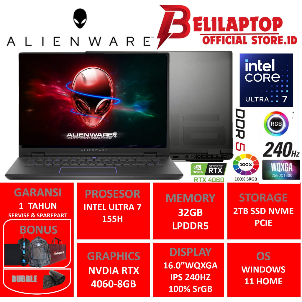 Laptop DELL Alienware M16 R2 Intel Ultra 7 155H RAM 32GBDDR5 2TB SSD RTX4060 8GB WQXGA IPS 240Hz W11