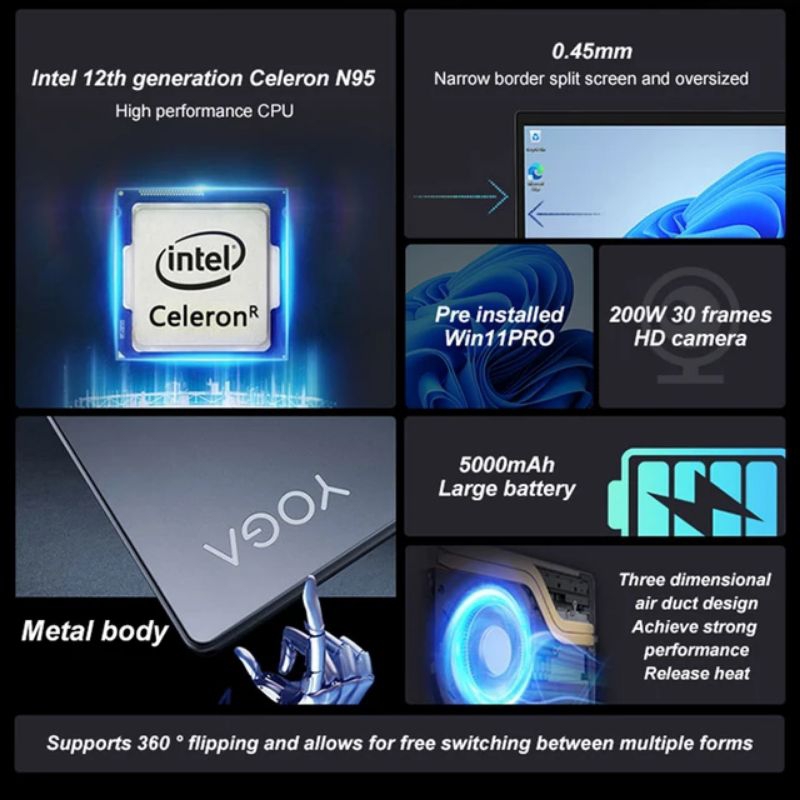 Laptop Dual Screen 14 14 Inch 2K Touch Screen Notebook Intel N95 CPU 360 Degree Flip Case 2 in 1