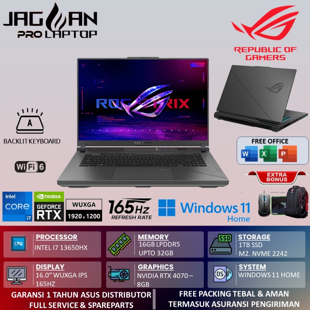 Laptop Gaming Asus Rog Strix G16 G614J1 Intel I7 13650HX 32GB DDR5 1TB RTX4070 8GB WQXGA 165hz RGB