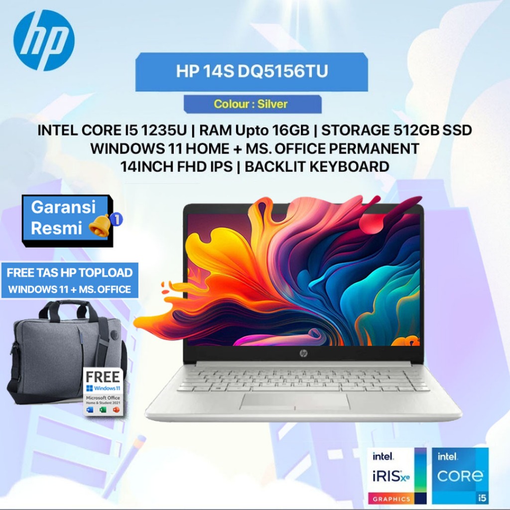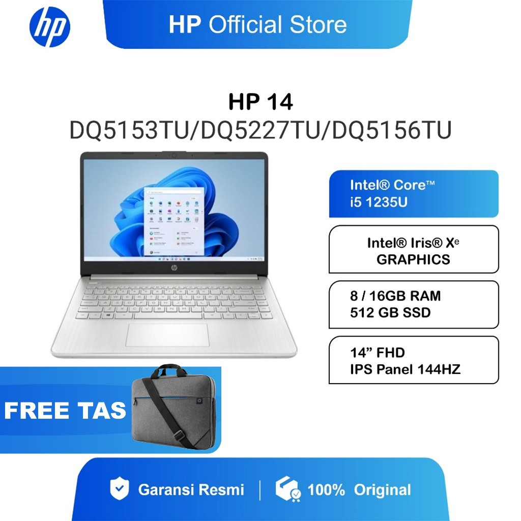 Laptop HP Intel Core 5 120U 8GB / 16GB RAM 256GB / 512GB SSD Silver Windows 11 Home 14 Inch Gen 12 Garansi 2 Tahun EP0633TU EP0611TU