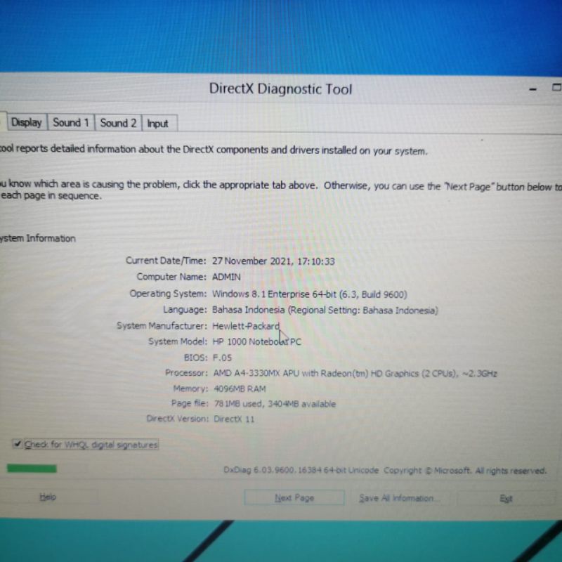 Laptop Hp 1000, Amd A4-3330MX Ram 4GB/HDD 320GB Vga Amd Radeon HD 6480G