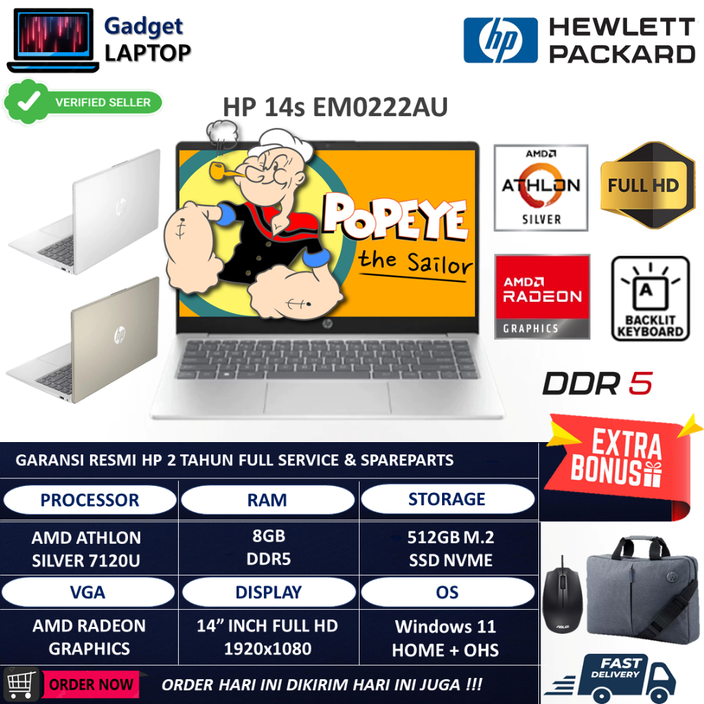 HP Laptop 14-em0222AU/em0223AU Amd Athlon 7120U 8GB DDR5 512GB FHD Backlit Windows 11 + OHS 2021