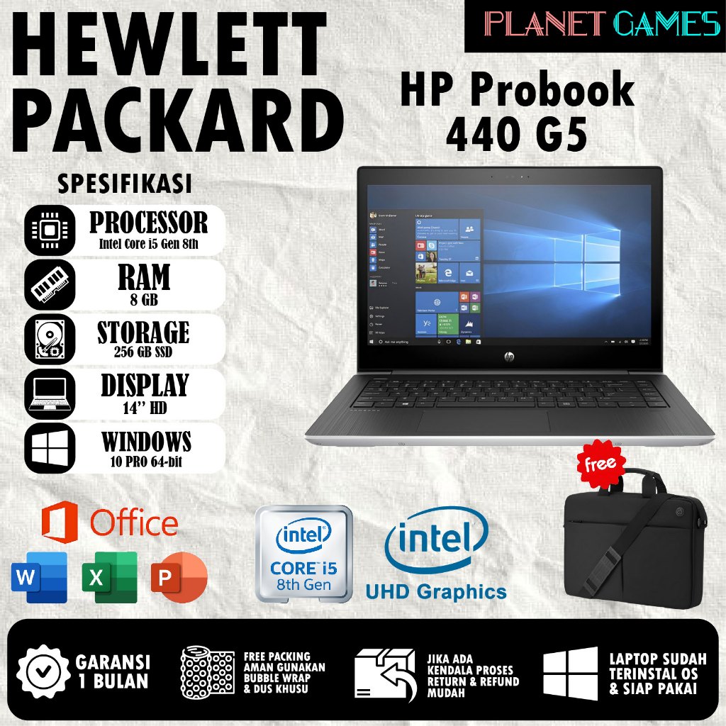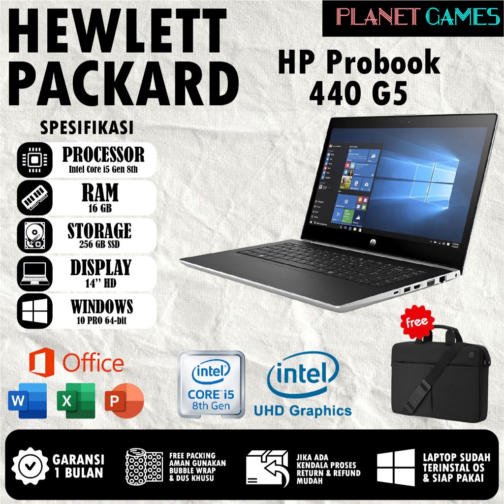 Laptop Hp Probook 440 G5 [ Planet Games ] Core i5 - Gen 8 UHD620 Office Recomended