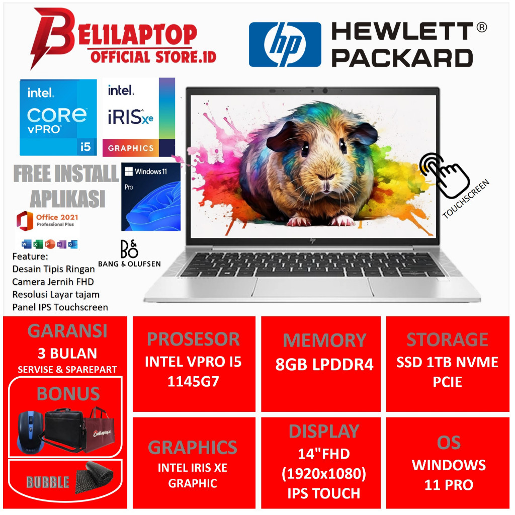 Laptop Kerja HP Elitebook 840 G8 Intel Vpro i5 1145G7 RAM 8GB SSD 1TB 14"Full HD IPS Touch W11 PRO
