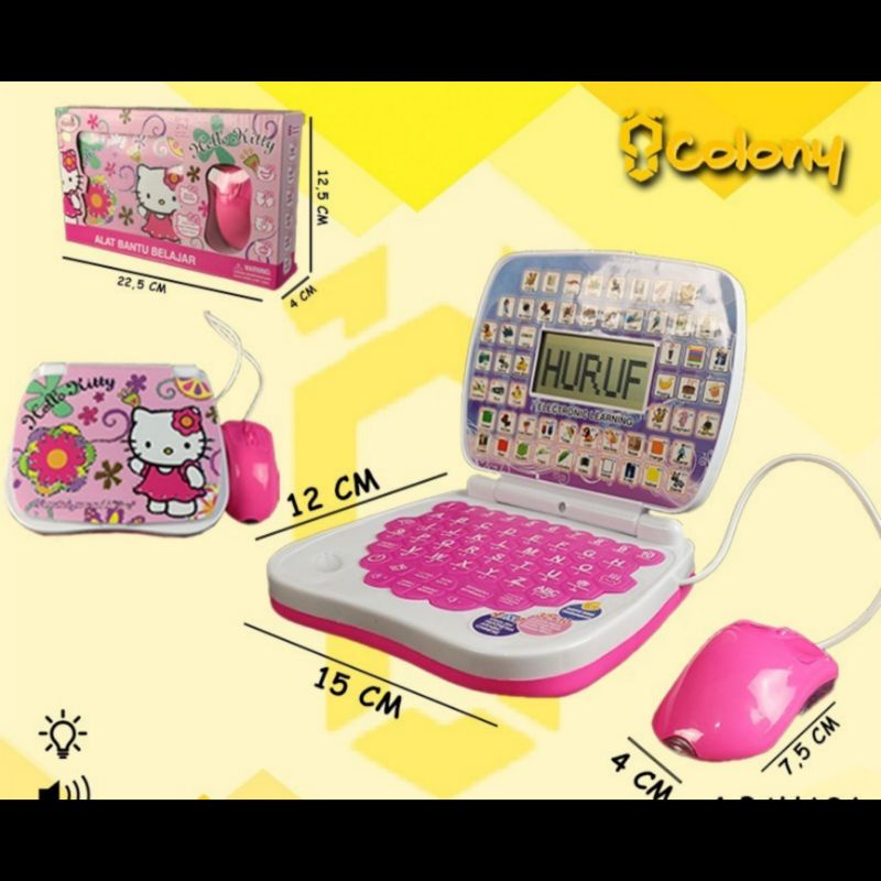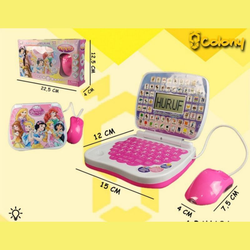 Laptop Layar LED dengan mouse mainan Leptop Alat Bantu Belajar Mainan Anak Edukasi Elektronik