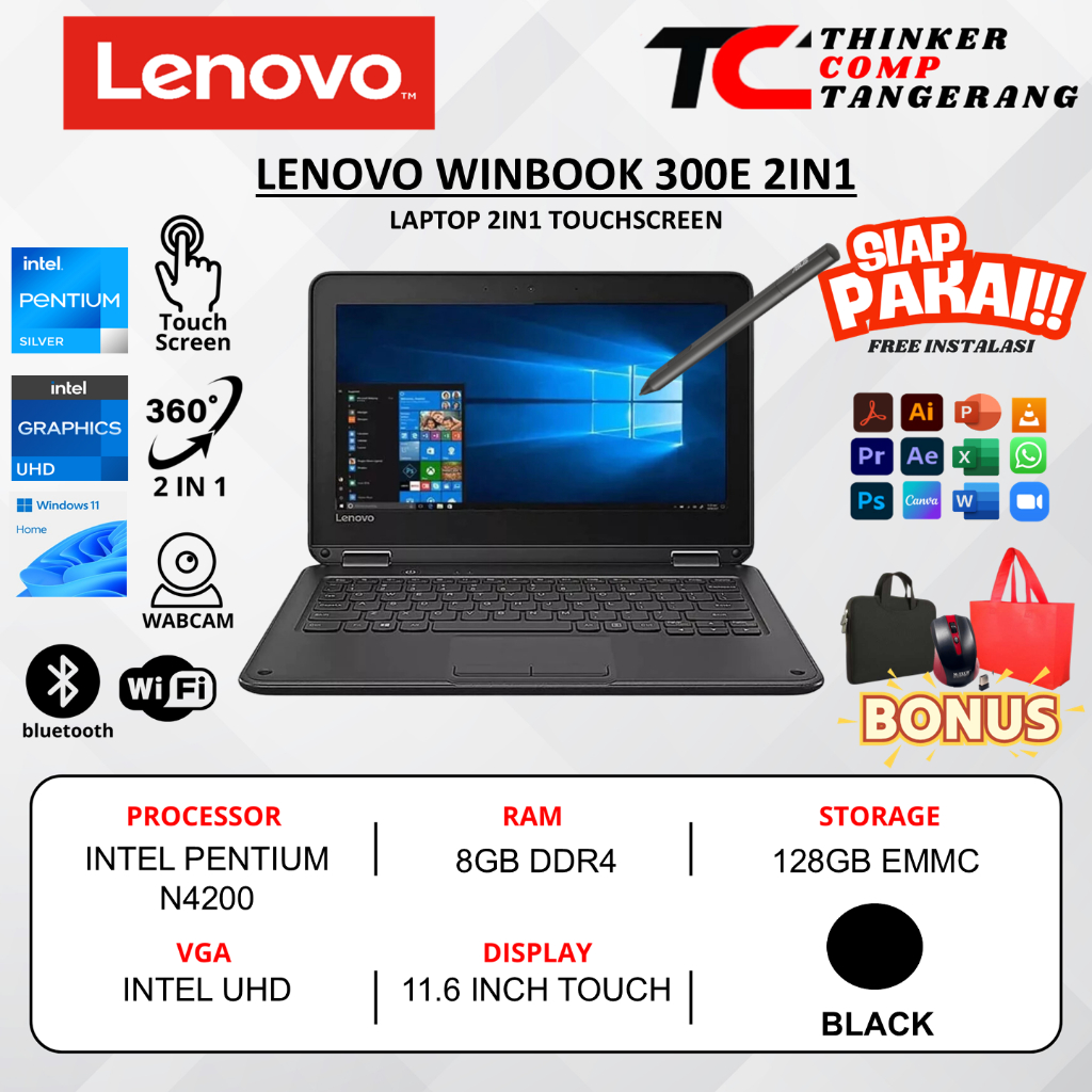 Laptop Pelajar Terlaris Lenovo Winbook 300E Intel N4200 Ram 8GB 128GB Touchscreen Windows 11