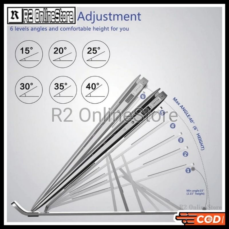 Laptop Stand Holder Aluminium Portable Lipat Riser Foldable Adjustable Height 6 Level Ketinggian - Stand Holder Dudukan Laptop Bahan Alumunium Foldable Adjustable Portable - Dudukan Laptop Foldable Laptop Stand Tablet Stand Holder Lipat Notebook Stand Ori