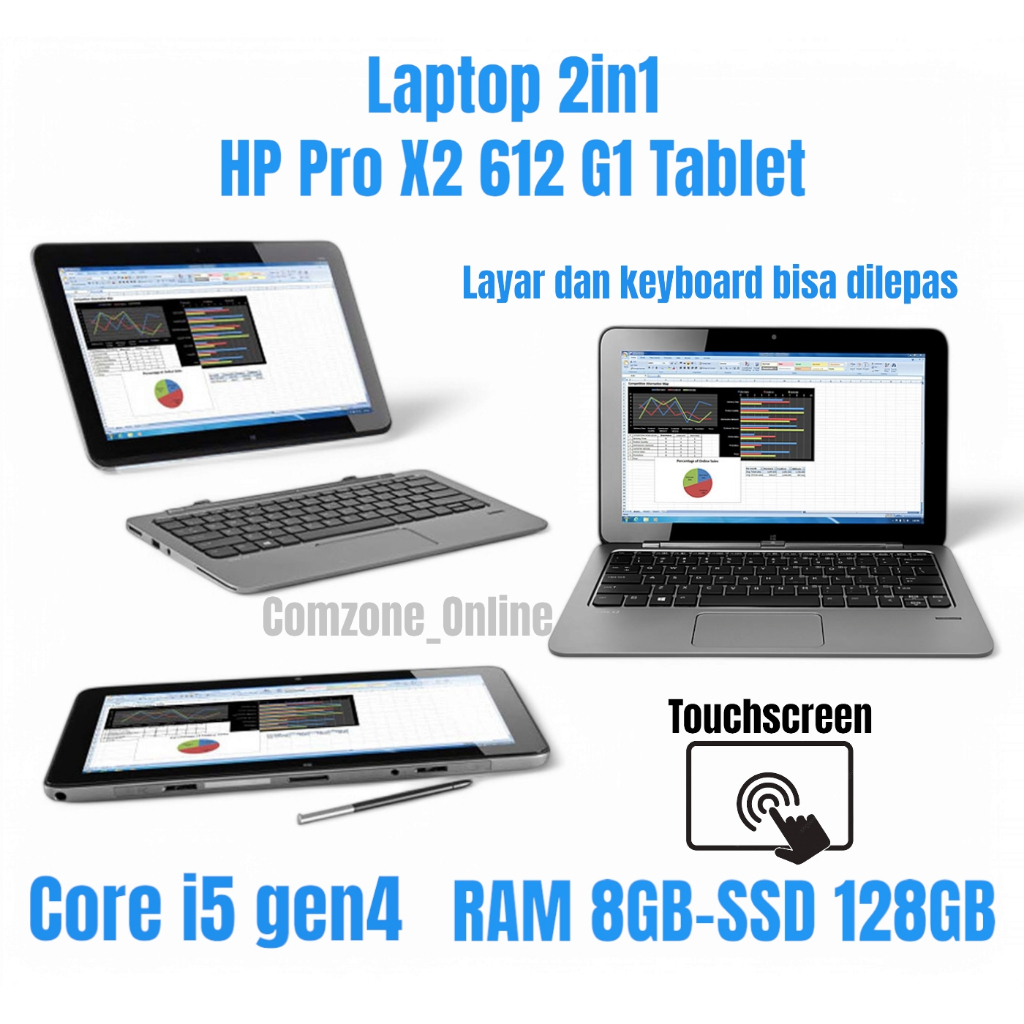 Laptop Tablet 2 in 1 HP Pro X2 612 G1 Core i5 gen4 Ram 8GB SSD 128GB tab12