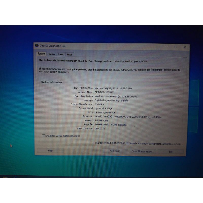 Laptop Toshiba core i7 gen 4 4800MQ 8core RAM 8GB SSD 128GB