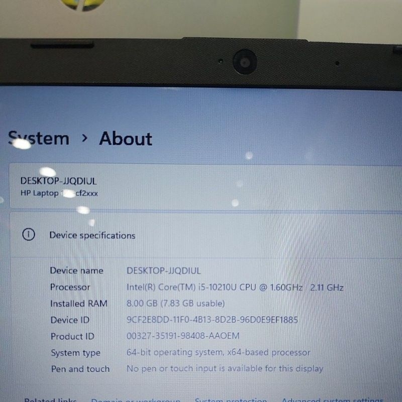 Laptop hp core i5 10210U ram 8gb ssd 256gb vga baru display 14s cf2031tx 179