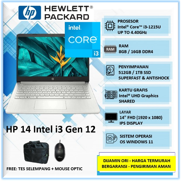 Laptop i3 HP 14 Intel Core i3 Gen 12 16GB SSD 1TB 14" FHD IPS Windows 11 Home
