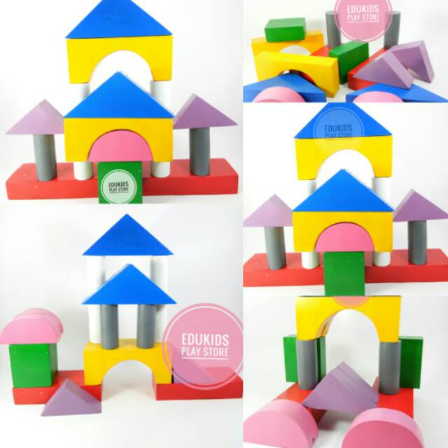 Lariskids Balok Pembangunan 18/ Mainan Edukasi Anak/ Mainan Anak Edukatif/ Mainan Kayu APE TK & PAUD