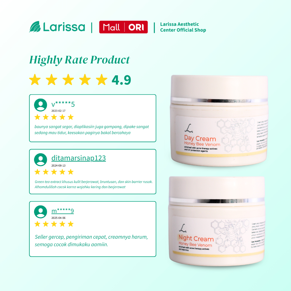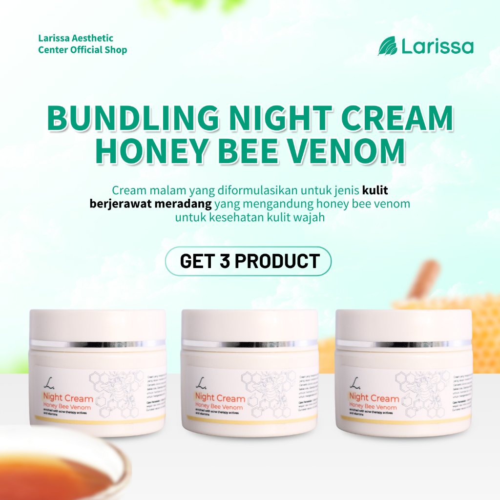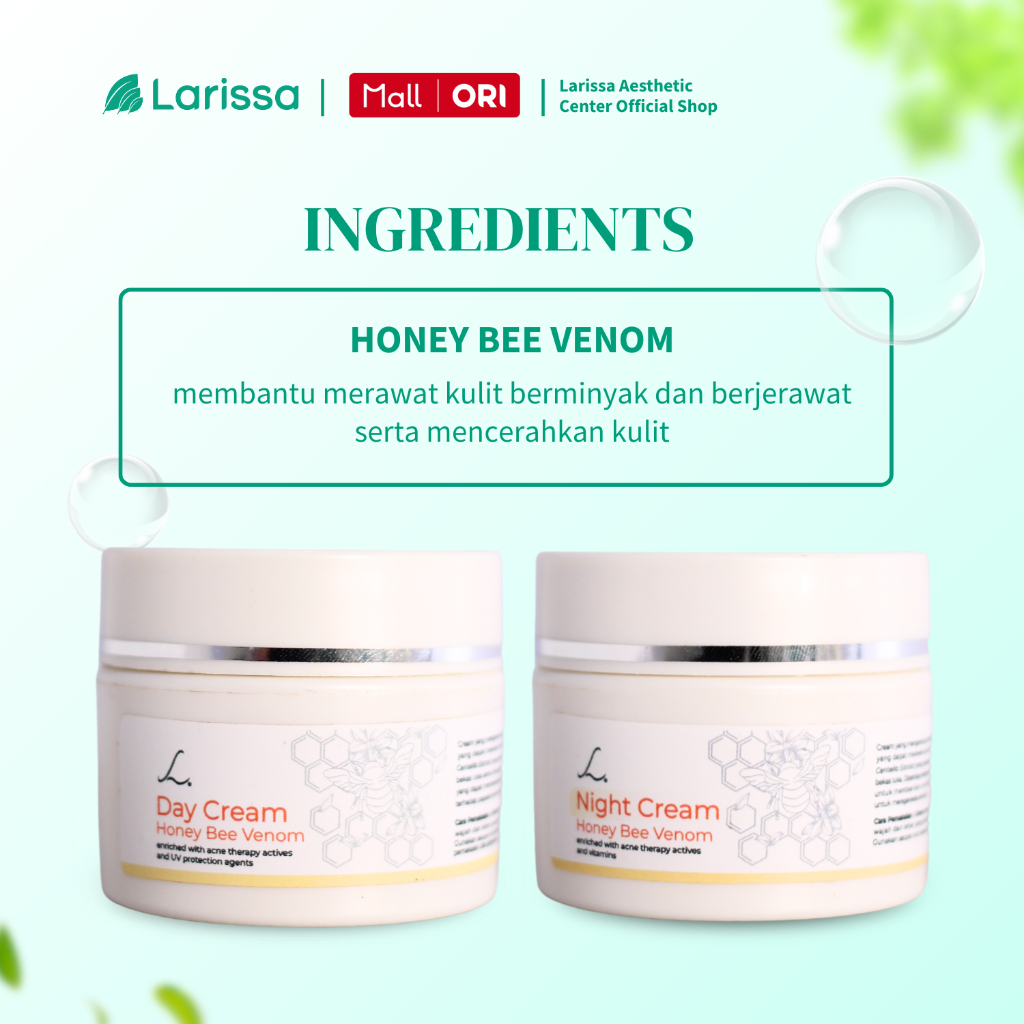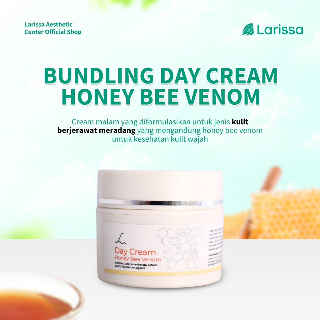 Larissa Day Night Cream Honey Bee Venom Acne Krim Pagi dan Malam Kulit Berjerawat Meradang Kemerahan