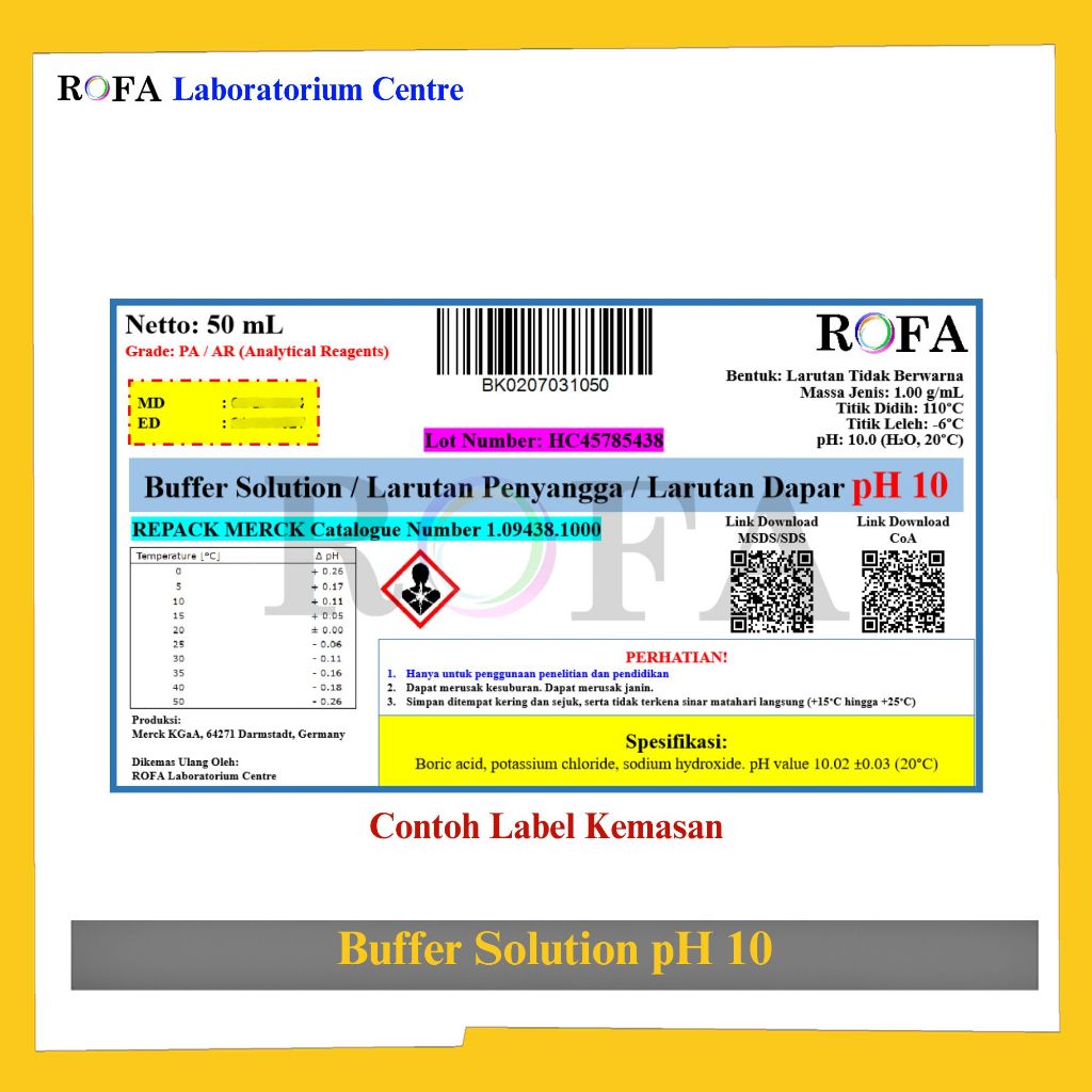 Larutan Buffer / Buffer Solution / Larutan Penyangga / Larutan Dapar pH 10 Pro Analisis Eceran 50 mL