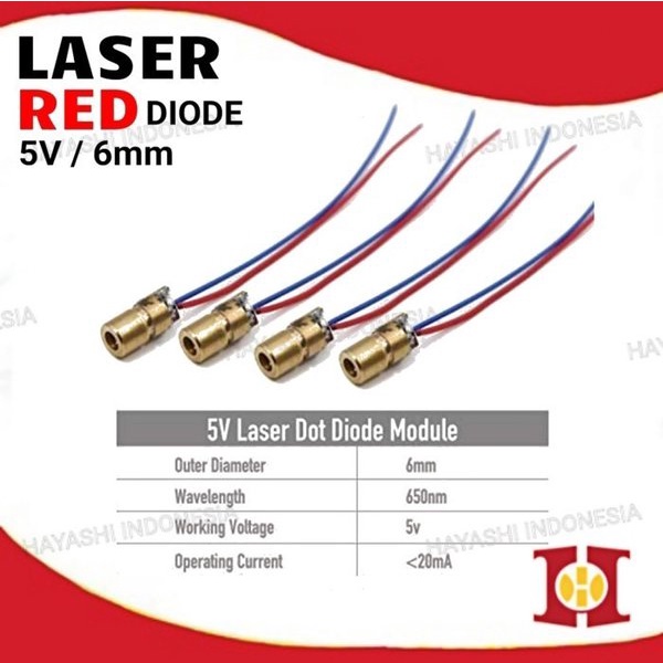 Laser Diode 5V Sinar Dioda 6mm Pointer Red Merah Dot Titik Arduino