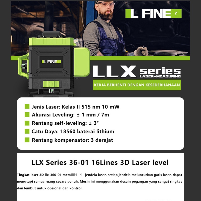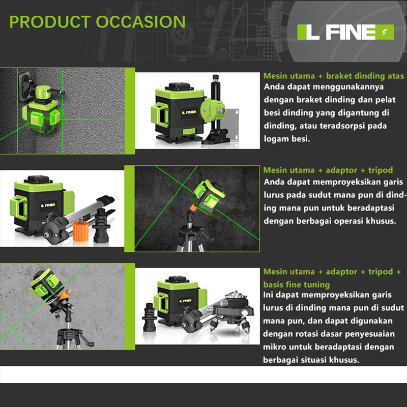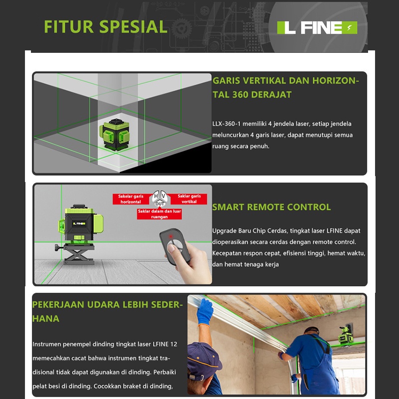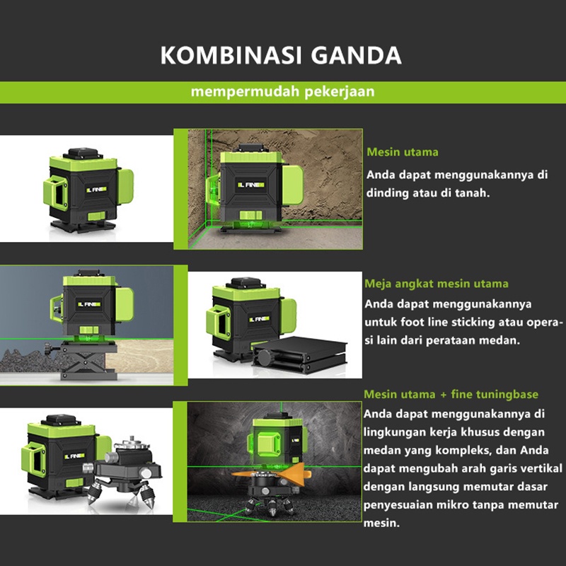 Laser Level 16 Lines Line Set 4D Tingkat Laser Tingkat Mesin Self Leveling Laser Sinar Hijau dengan Self Leveling Projector Green Lase Remote Tripod Panjang Hijau Alat pembuat garis laser hijau Remot Laser Siku Waterpass Digital