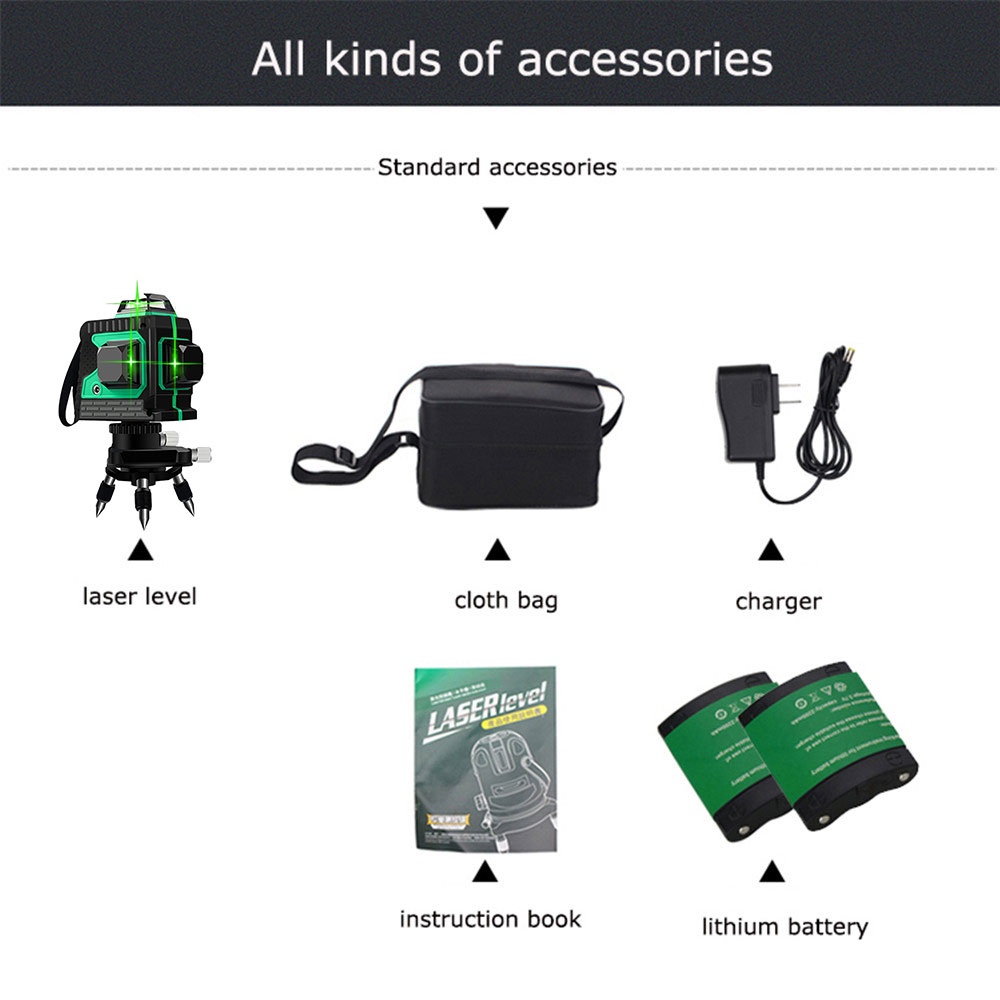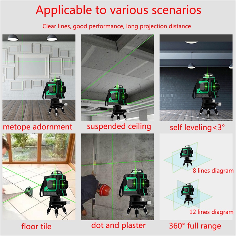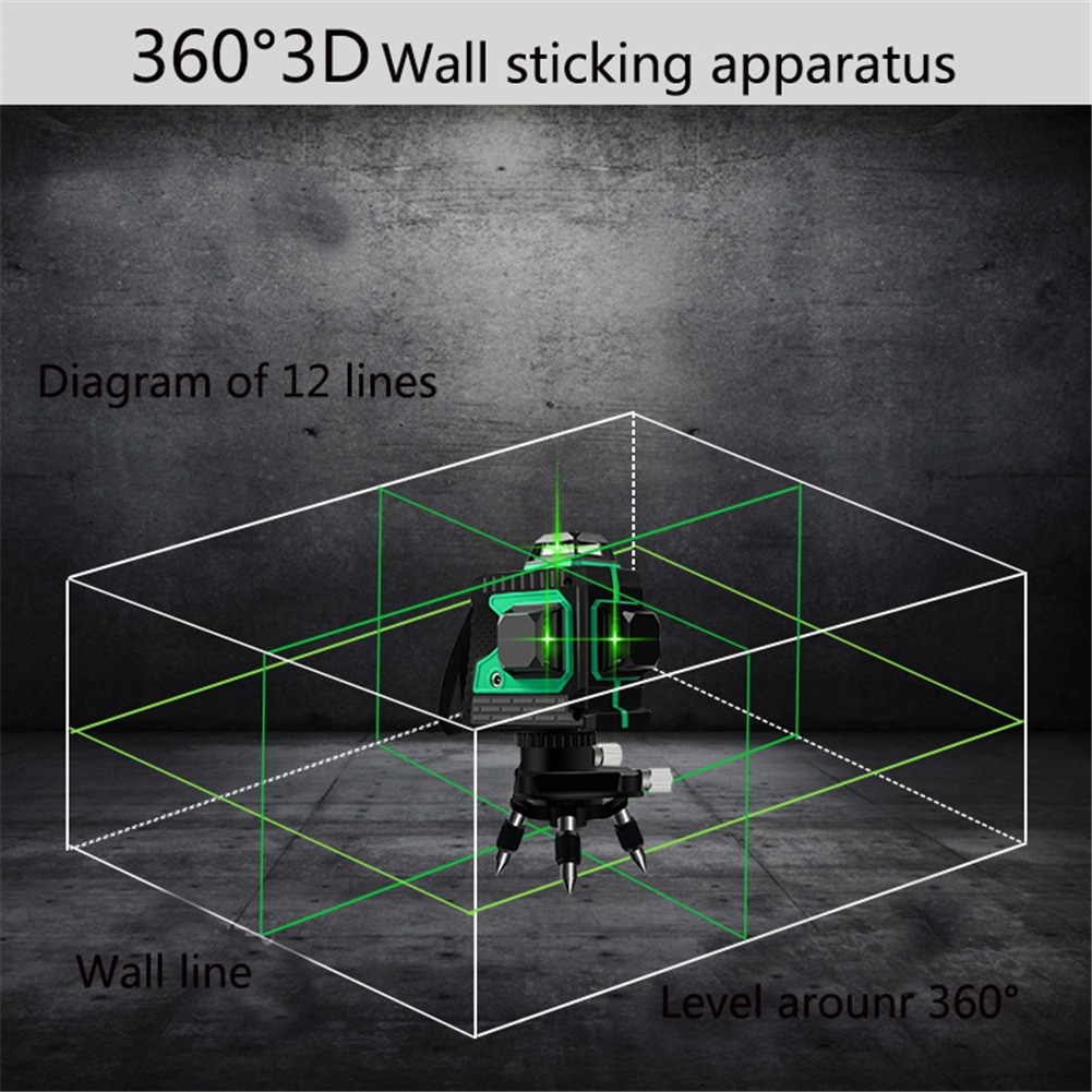 Laser Level Mesin Self Leveling 3D Wall Meter Laser Beam 12 Line