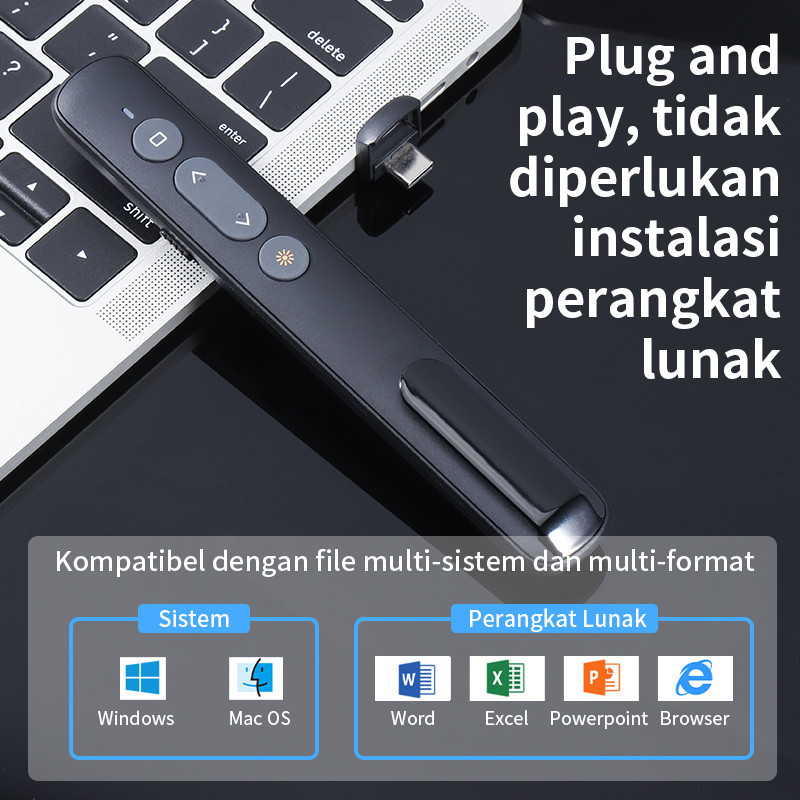 Laser Pointer Pen Pointer Presentasi USB Wireless Presenter 2.4GHz 50m