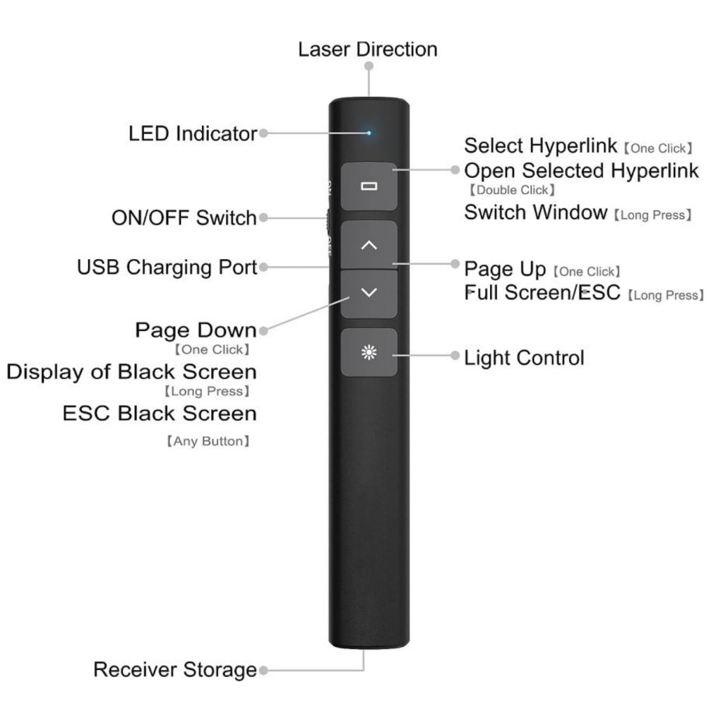 Laser Pointer Wireless Pointer Presentasi Presenter USB Rechargeable Laser Remote Control 100M / Wireless Laser Pointer for
