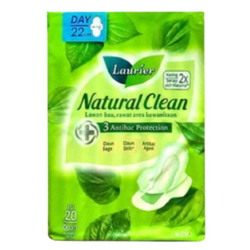 Laurier Natural Clean 22 cm Wing Isi 20/Laurier Natural Clean 25 cm Wing Isi 16/Pembalut Laurier Wing Non Wing/Laurier Sayap