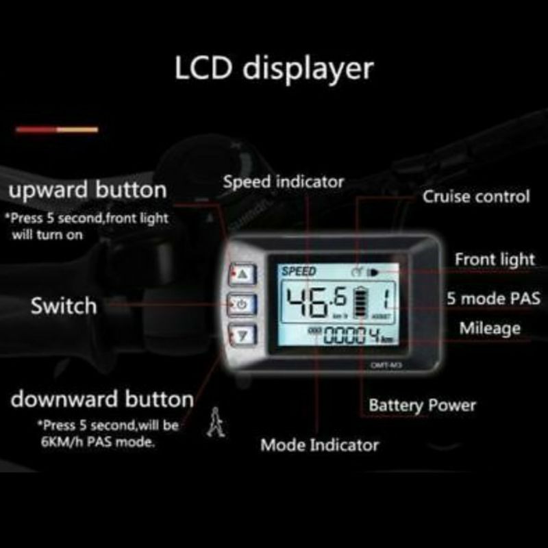 Layar LCD display sepeda listrik 36v panel OMT-M3 scooter listrik sparepart indikator baterai speed