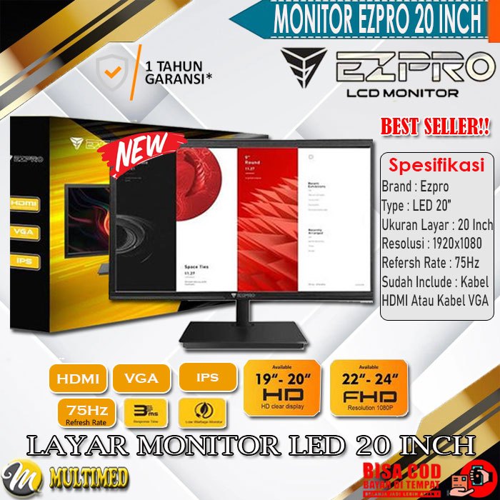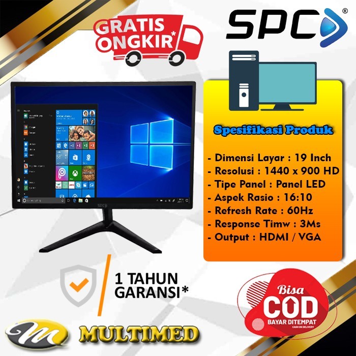 Monitor Layar LED 19" Inch Wide Screen SPC Baru