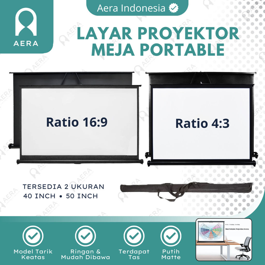 Standing Screen Projector Portable 40 dan 50 Inch Ratio 4:3 dan 16:9 | Layar Proyektor Portable