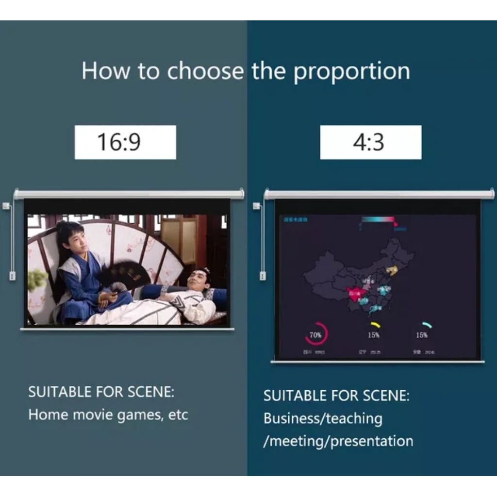 Layar Proyektor Motorized 133 Inch Rasio 16:9 (295 cm x 165cm) | Untuk Tipe Projector HD, FULL HD, 4K UHD