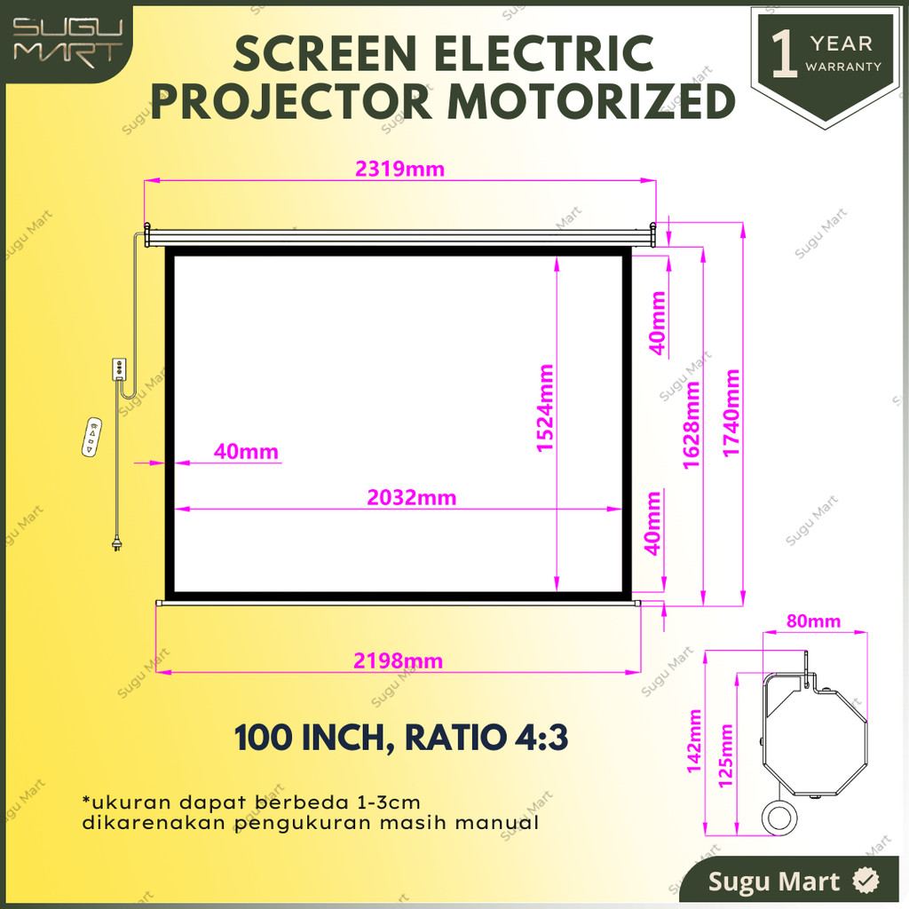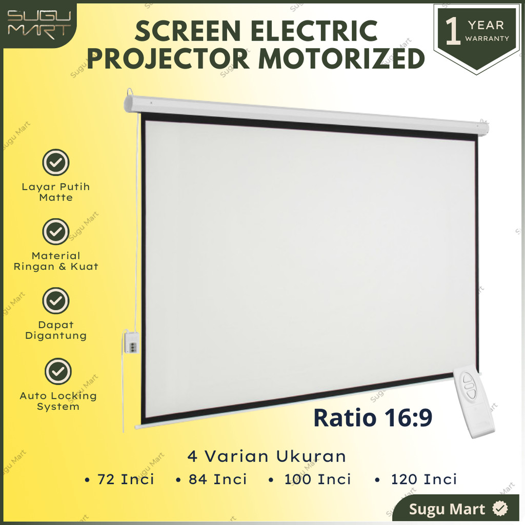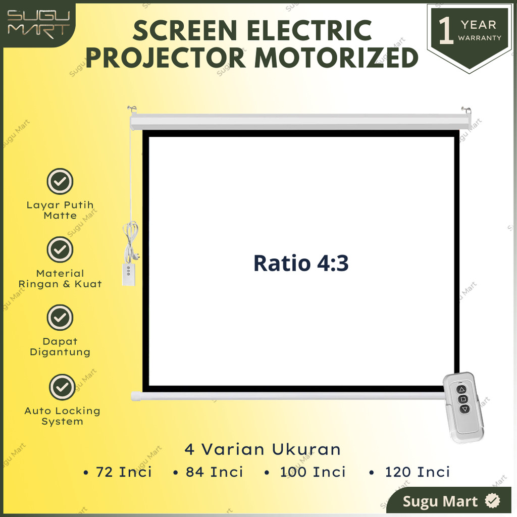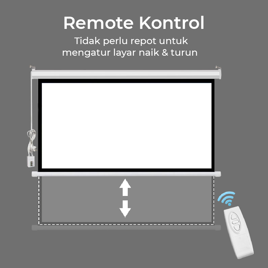 Screen Projector Motorized 72 - 84 - 100 - 120 inch Ratio 4:3 dan16:9 | Layar Proyektor Elektrik Motorized Otomatis Remote