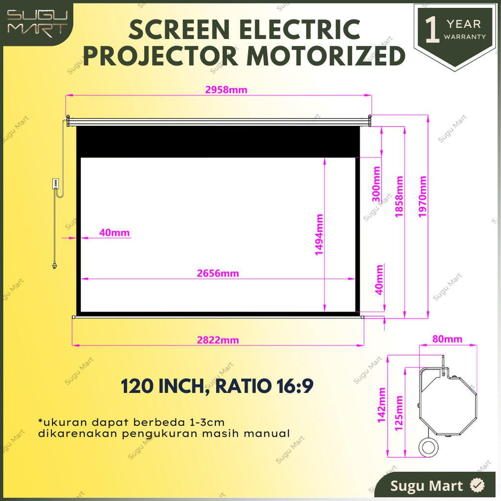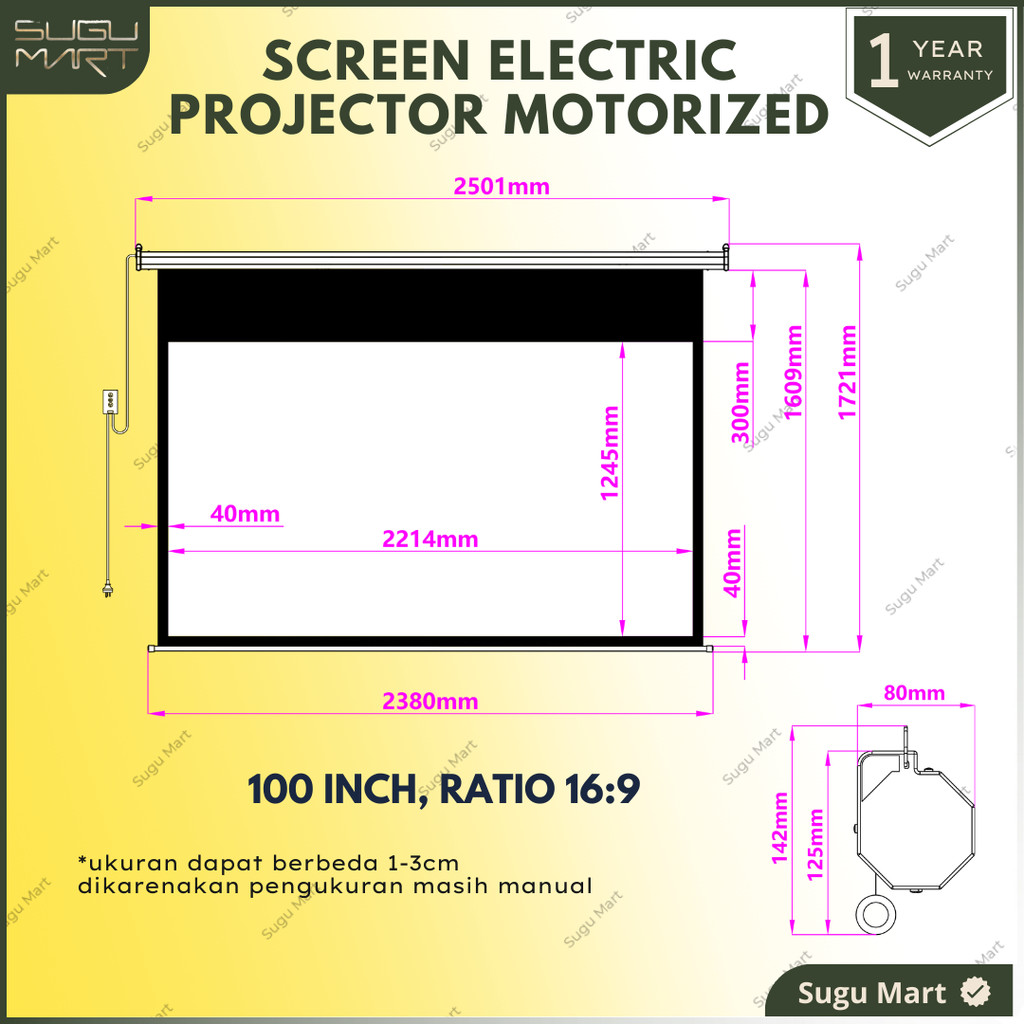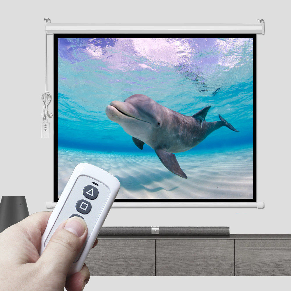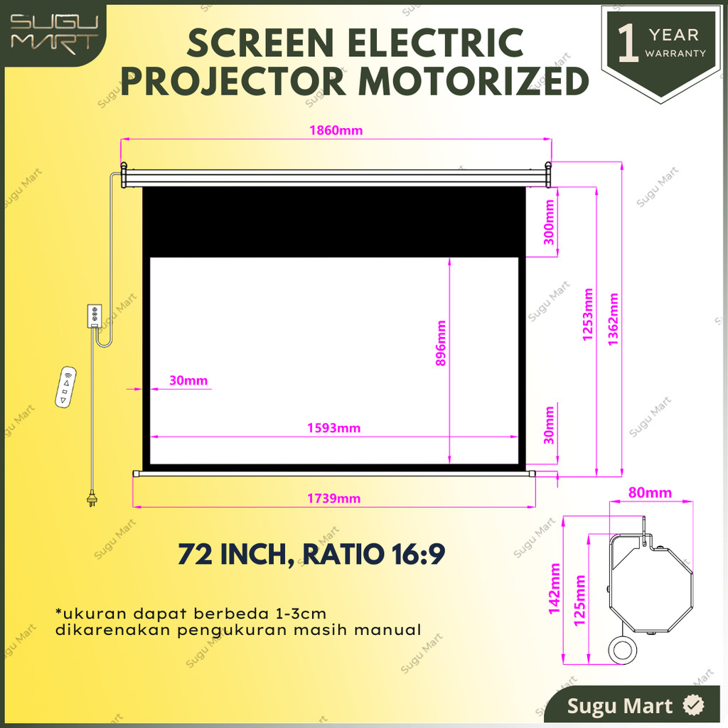 Screen Projector Motorized 72 - 84 - 100 - 120 inch Ratio 4:3 dan16:9 | Layar Proyektor Elektrik Motorized Otomatis Remote