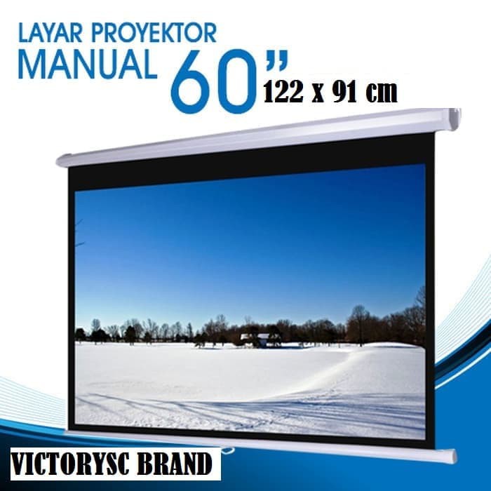 Layar proyektor Screen Projector Tarik Gulung Otomatis 60 Inch 122x91cm Pull Down