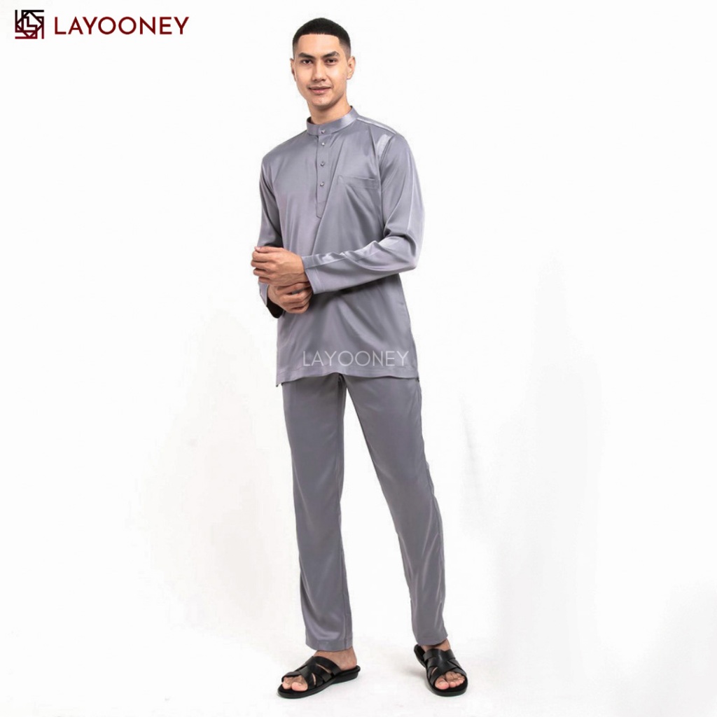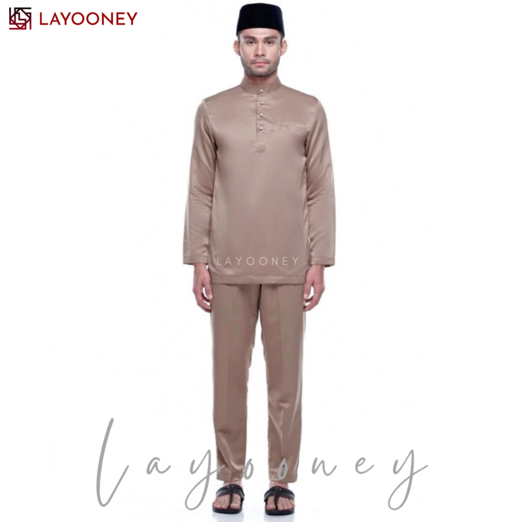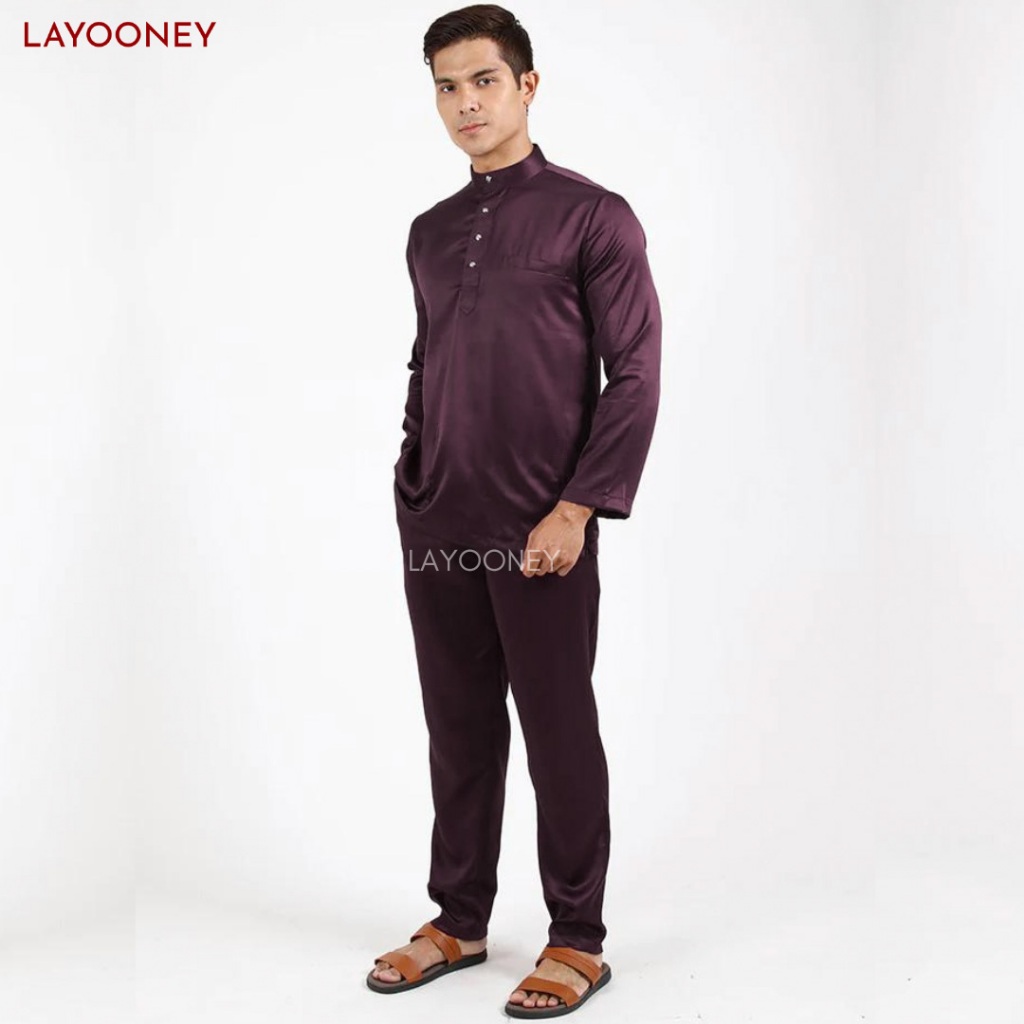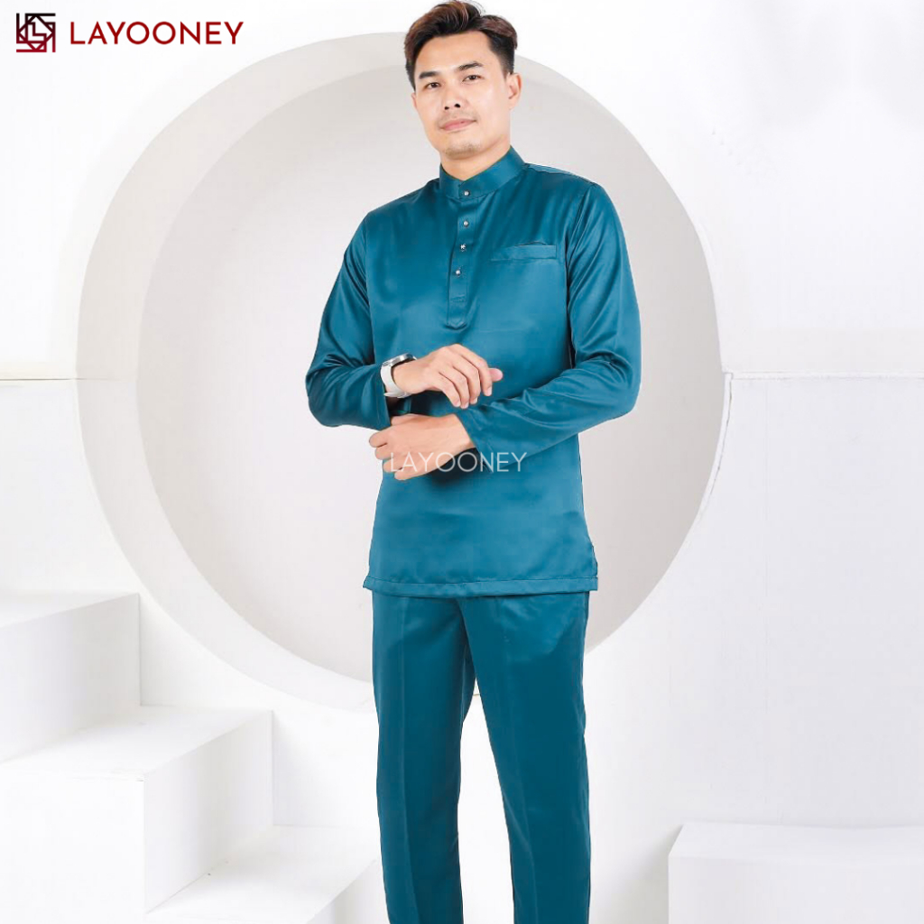 Layooney Baju Teluk Belanga Pria Melayu Kurung Setelan Pakaian Cekak Musang Koko Muslim Satin Modern