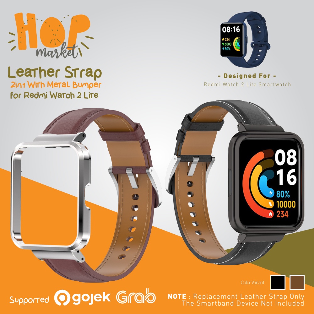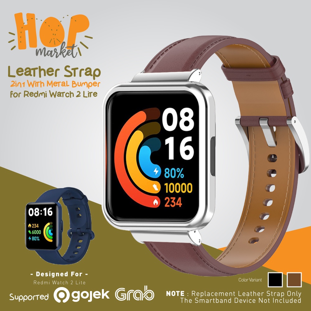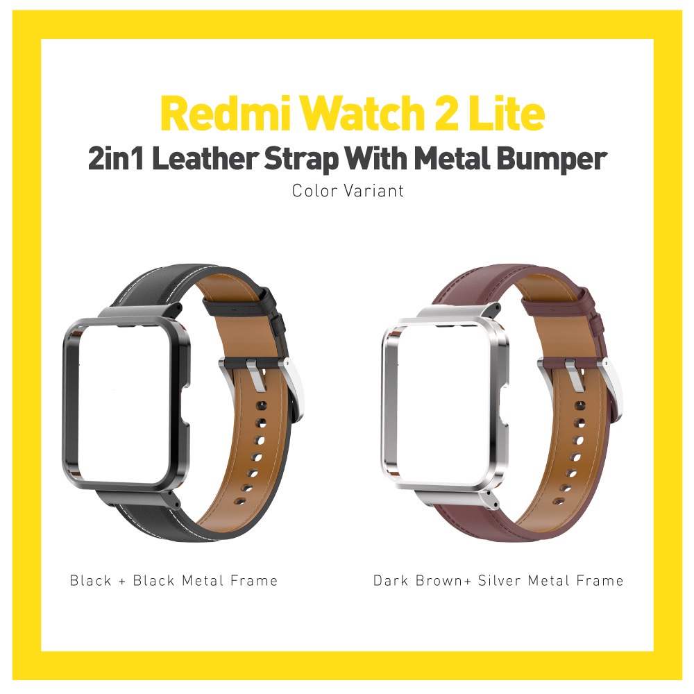 Leather 2in1 Strap Kulit with Bumper Frame Case for Xiaomi Redmi Watch 2 Lite (Tali Jam Smartwatch dengan Cover Casing)