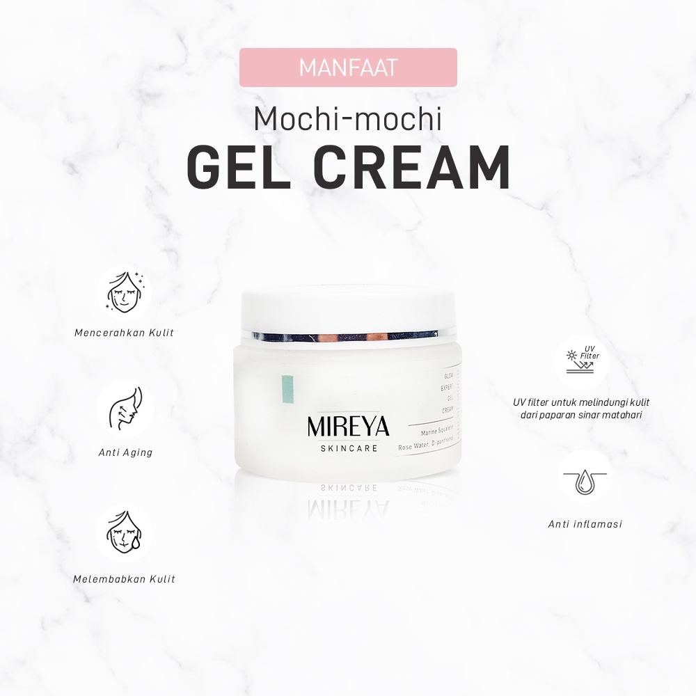 Mireya Mochi Glow Expert Gel Cream Moisturizer 15gr – Pelembap Wajah Ringan dengan Squalene, Vitamin B3 & Vitamin E untuk Kulit Lembap dan Sehat