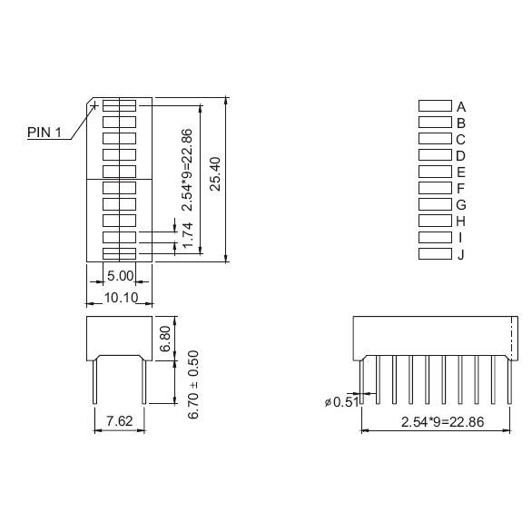 Led Bar Bargraph 10 segment 4 warna 2R3Y4PG1B Indikator LED kotak DIP - HS2R3Y4PG1B-AS