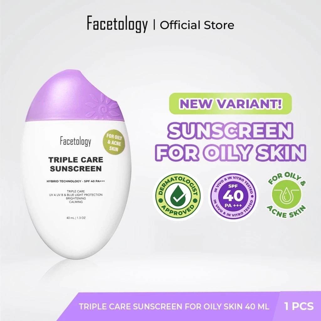 FACETOLOGY TRIPLE SUNSCREEN KRIM PENCERAH WAJAH / FACIAL WASH SABUN CUCI MUKA / micellar / lip protector / Tinted / Acne / Peeling