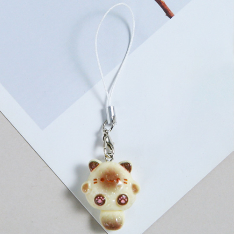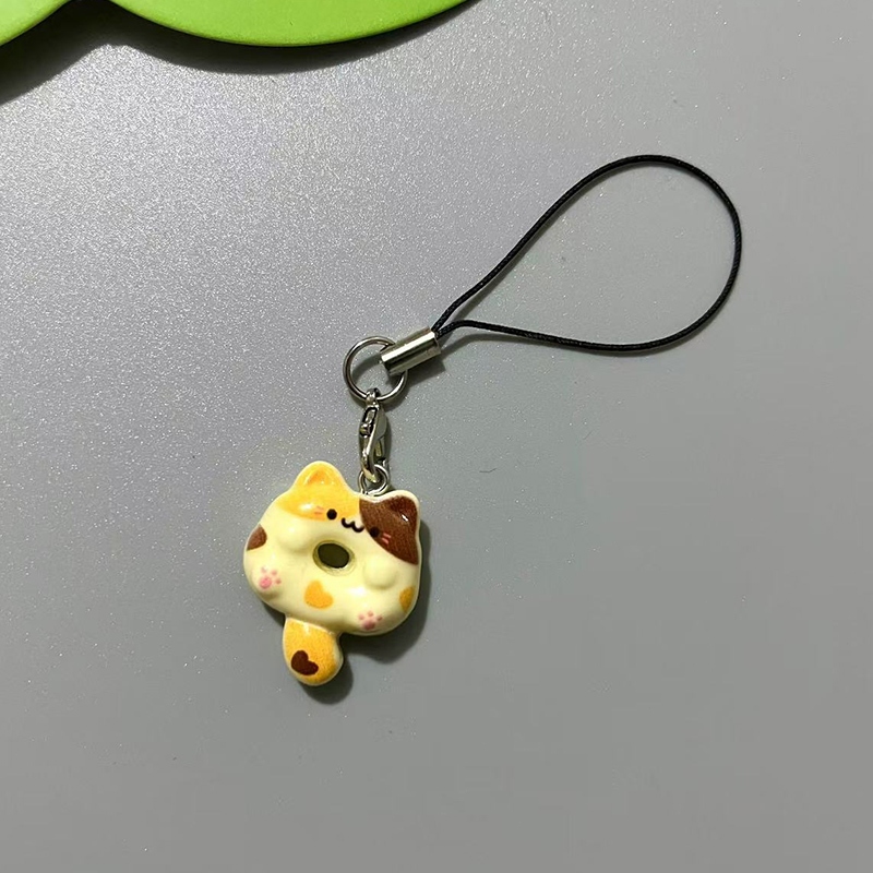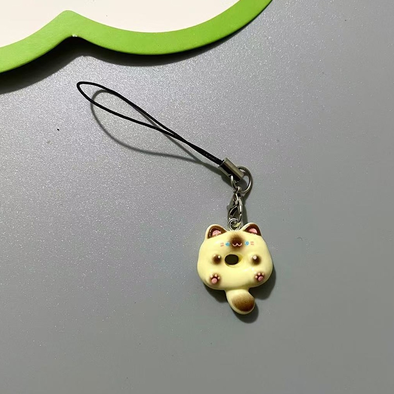 Liontin Ponsel Kucing Siam Lucu Lanyard hp Cute Cat Doughnut Gaya Peri Manis Gantungan hp Lucu Kucing Resin Phone Strap-FAS