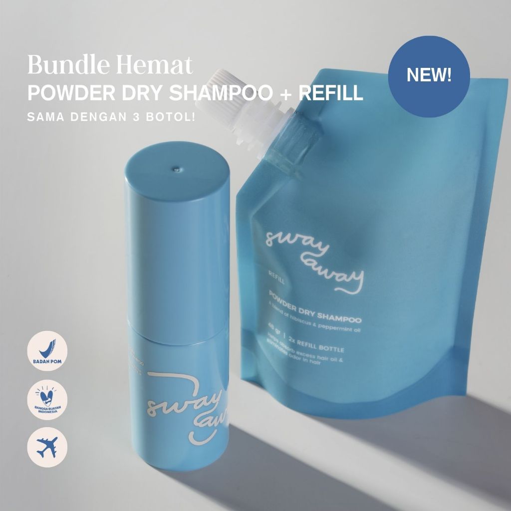 (BUNDLE HEMAT) Sway Away - Powder Dry Shampoo + Refill | Anti Lepek | Anti Minyak | Hair Powder | Travel Size | Shampoo Kering | Styling Rambut | Pewangi Rambut