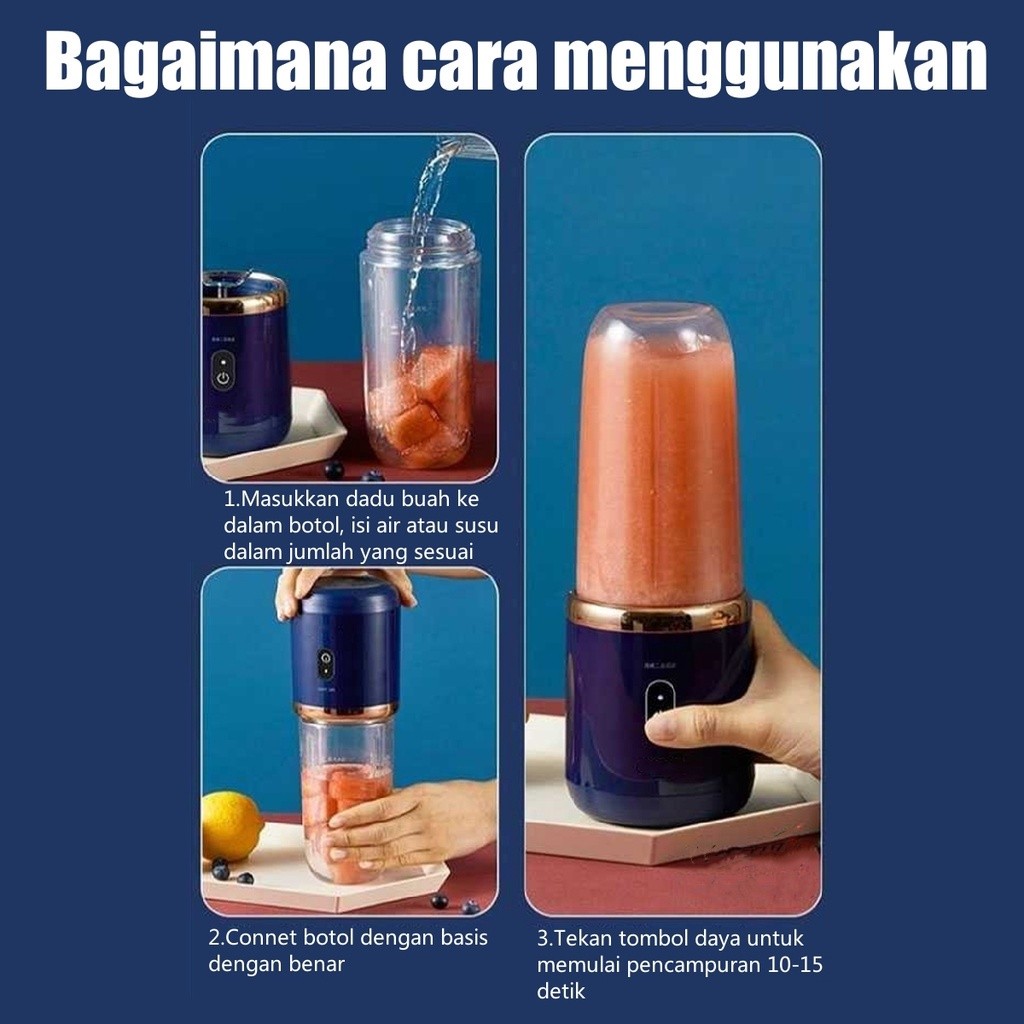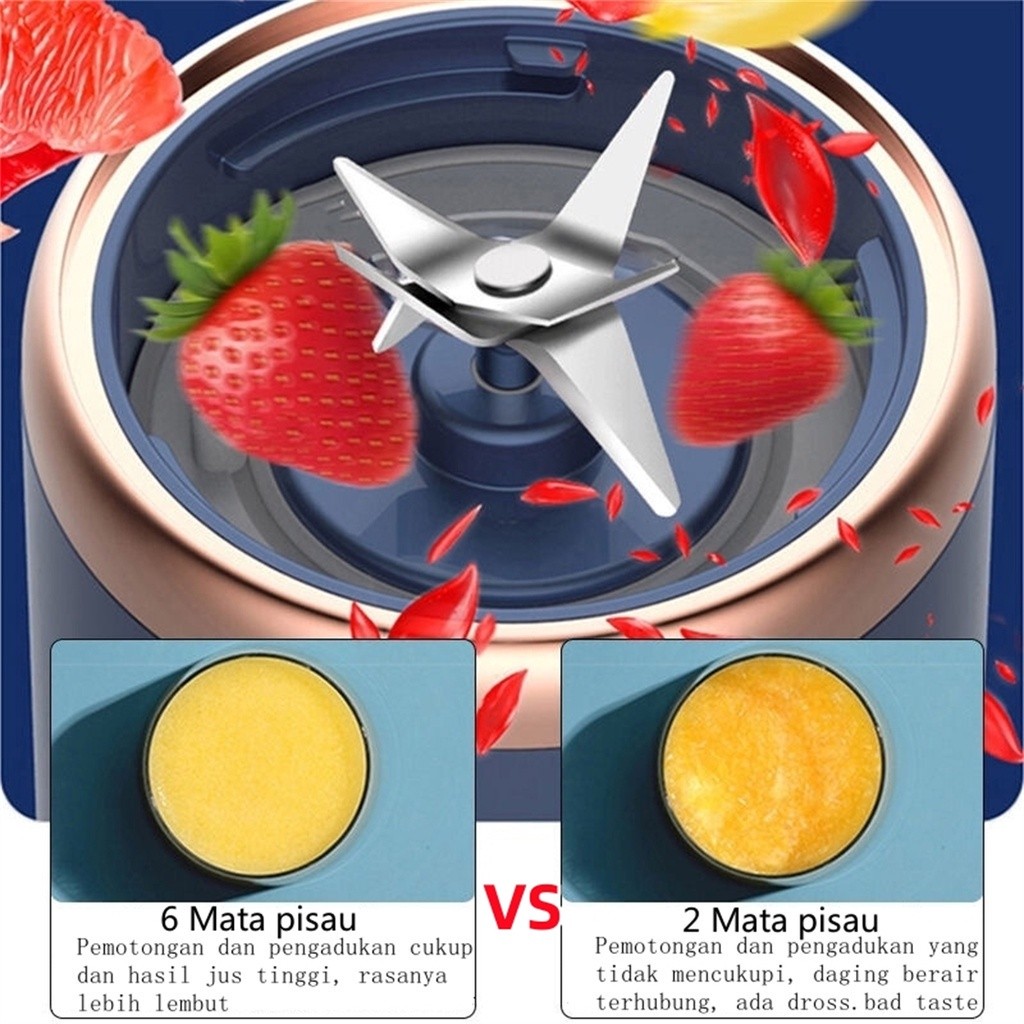 【silent】Blender Portable Mini Juicer 6 Mata Pisau 400ML Port Charger USB Electric