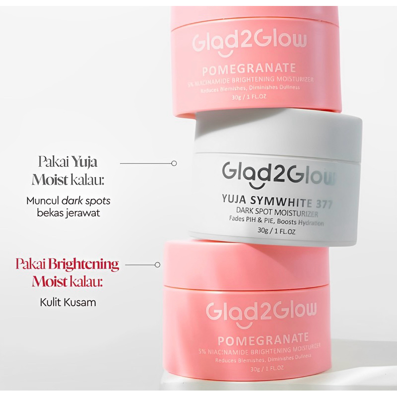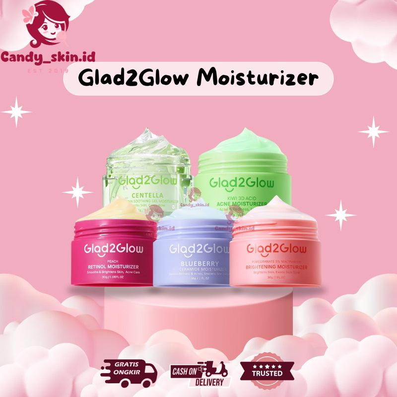 (BPOM)(30gr) Glad2Glow Blueberry Ceramid Moisturizer Cream Skin Barrier Repair | Pelembab Wajah | G2G Pomegranate Niacinamide Brightening Moist | Peach Retinol Moist | mengatasi jerawat kemerahan | Kiwi 3D Acid Acne | Centella Allantoin Soothing