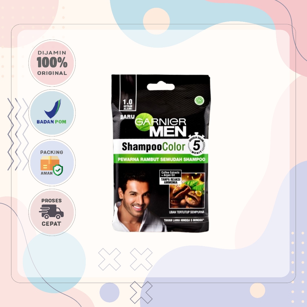 Garnier Men Shampoo Color Series 1.0 Hitam Alami (10216) /3.0 Coklat Kehitaman (10217) 10ml + 10ml
