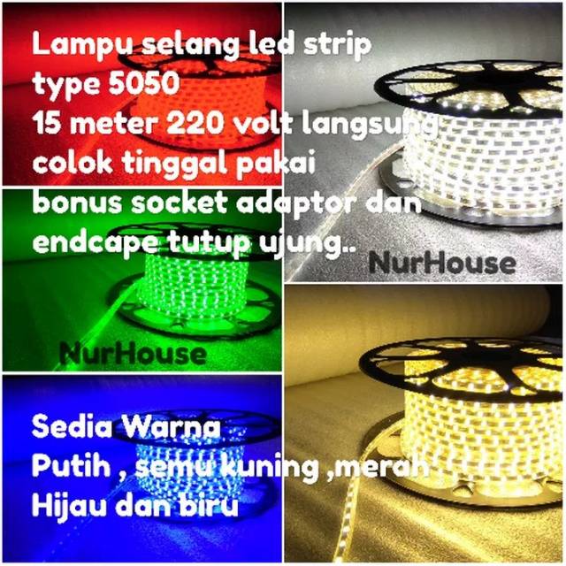 Led Strip 220 volt 15 meter SMD 5050 lampu hias plafon lampu selang