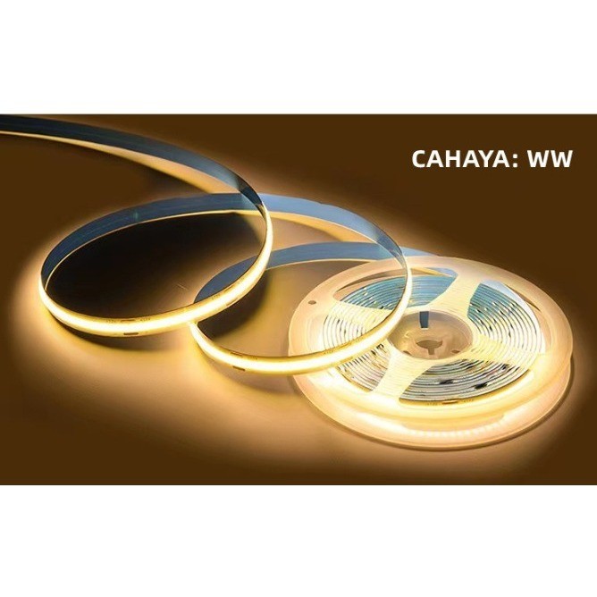 Led Strip COB DC 12v 12volt 5m 5meter Lampu Strip Light COB IP33 White Putih Warmwhite Kuning Lampu Hias