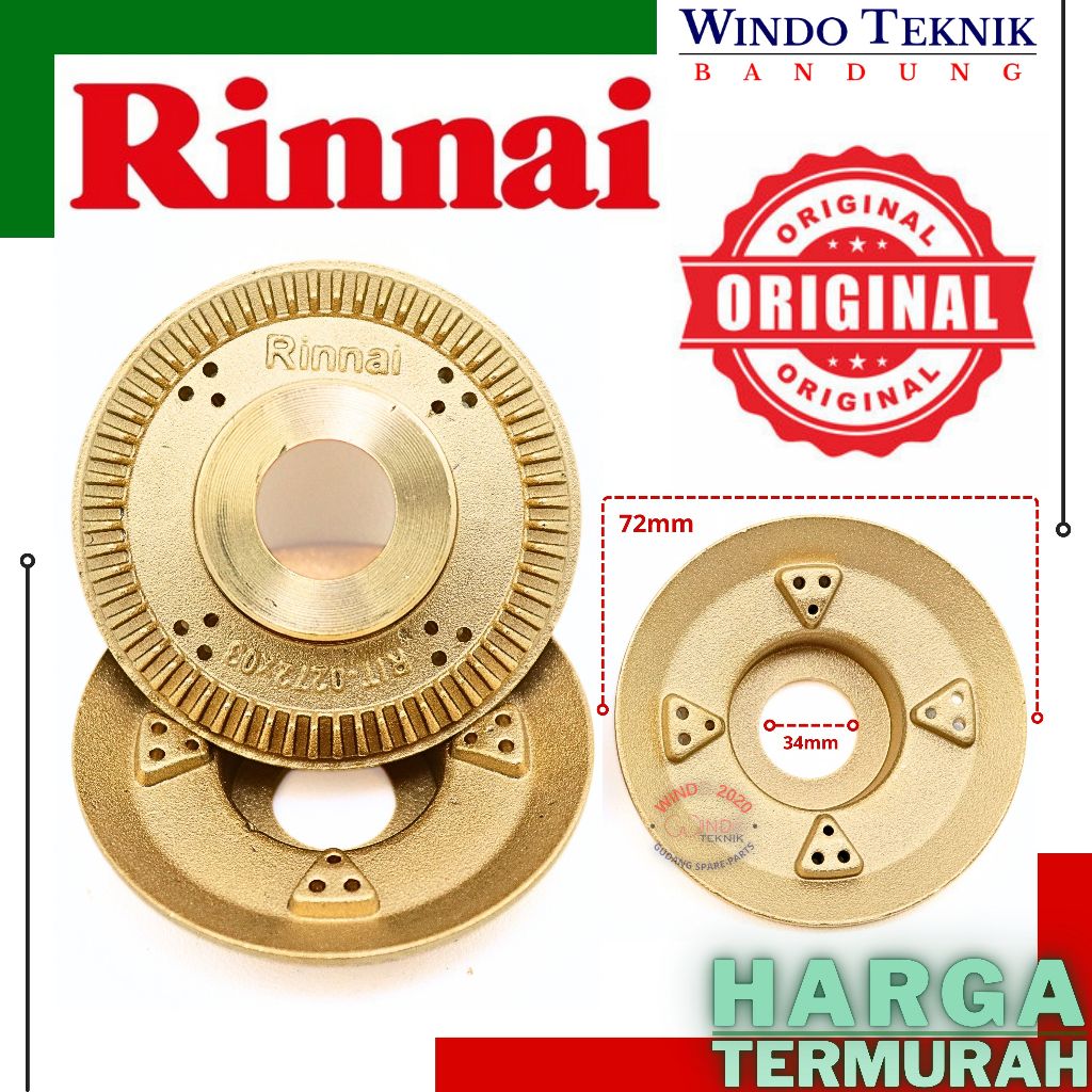 BURNER KOMPOR RINNAI ORIGINAL 522C E CE ETC 602 E 603 | BARNER KUNINGAN KOMPOR RINAI KIRI KECIL | KUNINGAN RING API RINNAI BURNER KOMPOR RINNAI RK AUTHENTIC CAP E 100% COCOK WINDO