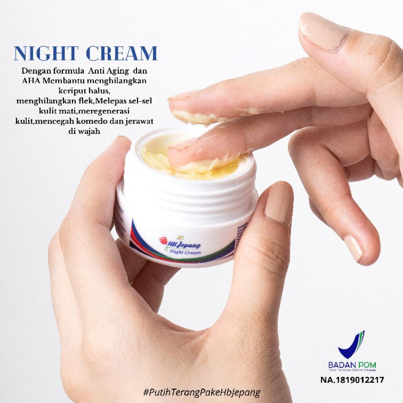 CREAM MALAM HB JEPANG FACE CREAM NIGHT GLOWING MEMUTIHKAN DAN MENGHILANGKAN JERAWAT SCAR DAN FLEK